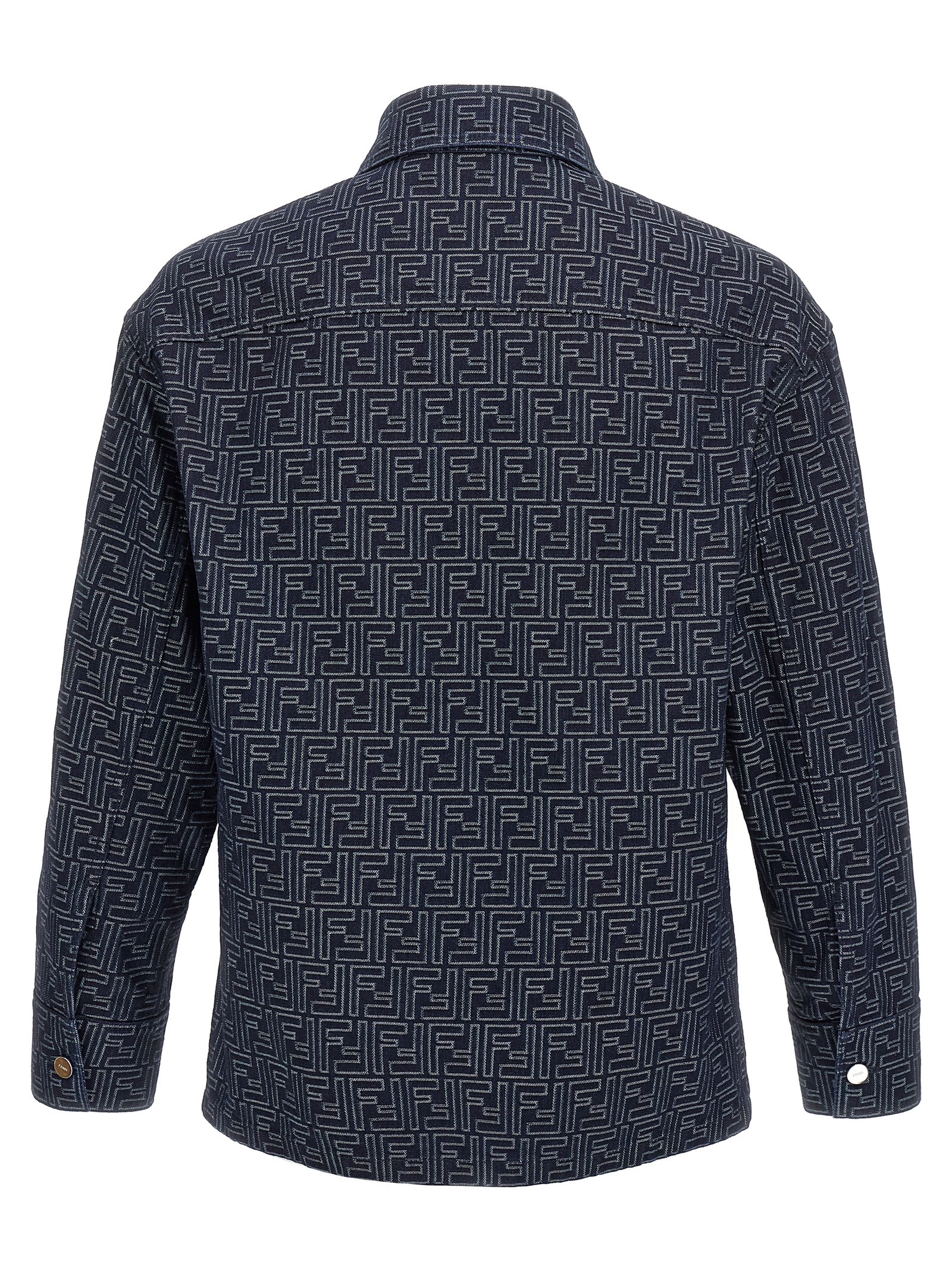 FF washed jeans fabric overshirt, front snap button closure, breast pocket, long sleeves with cuffs and slightly dropped shoulder, unlined.