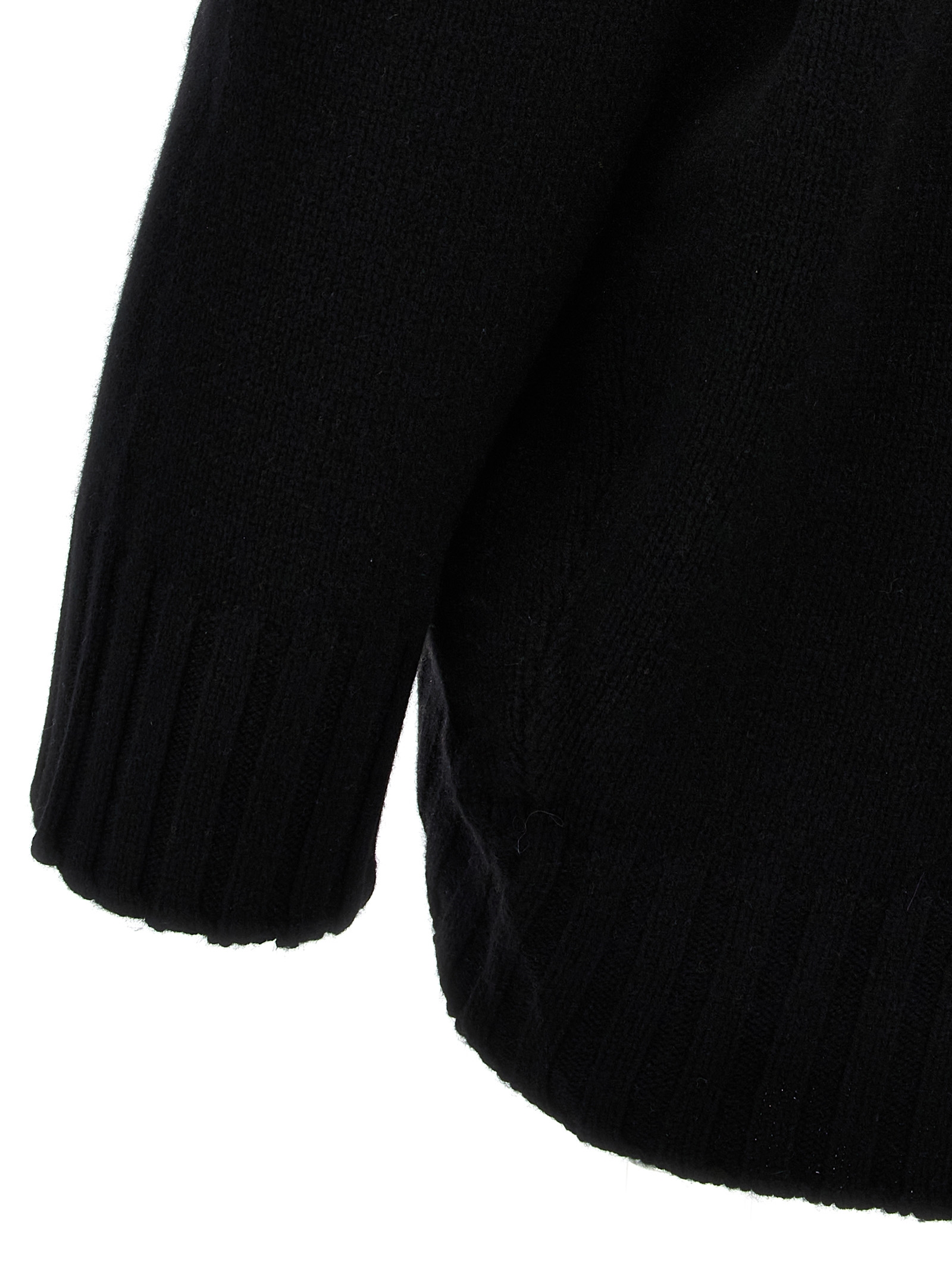 Oversized wool and cashmere blend knit dress with front logo embroidery, crew neck, long sleeves, curved hem.