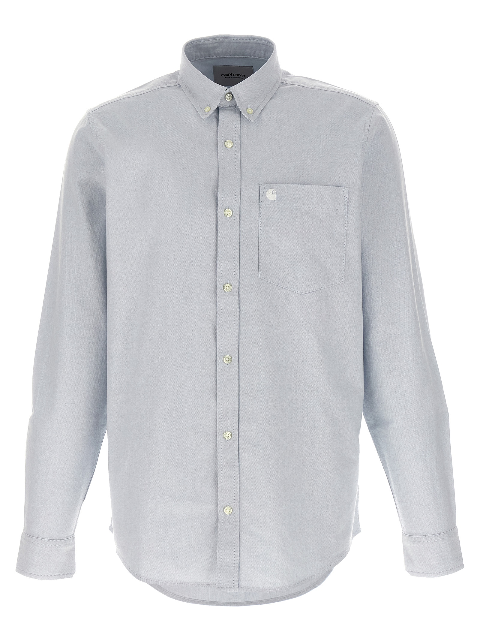 Oxford cotton shirt with classic collar, patch pocket with logo embroidery, front button closure, long cuffed sleeves.