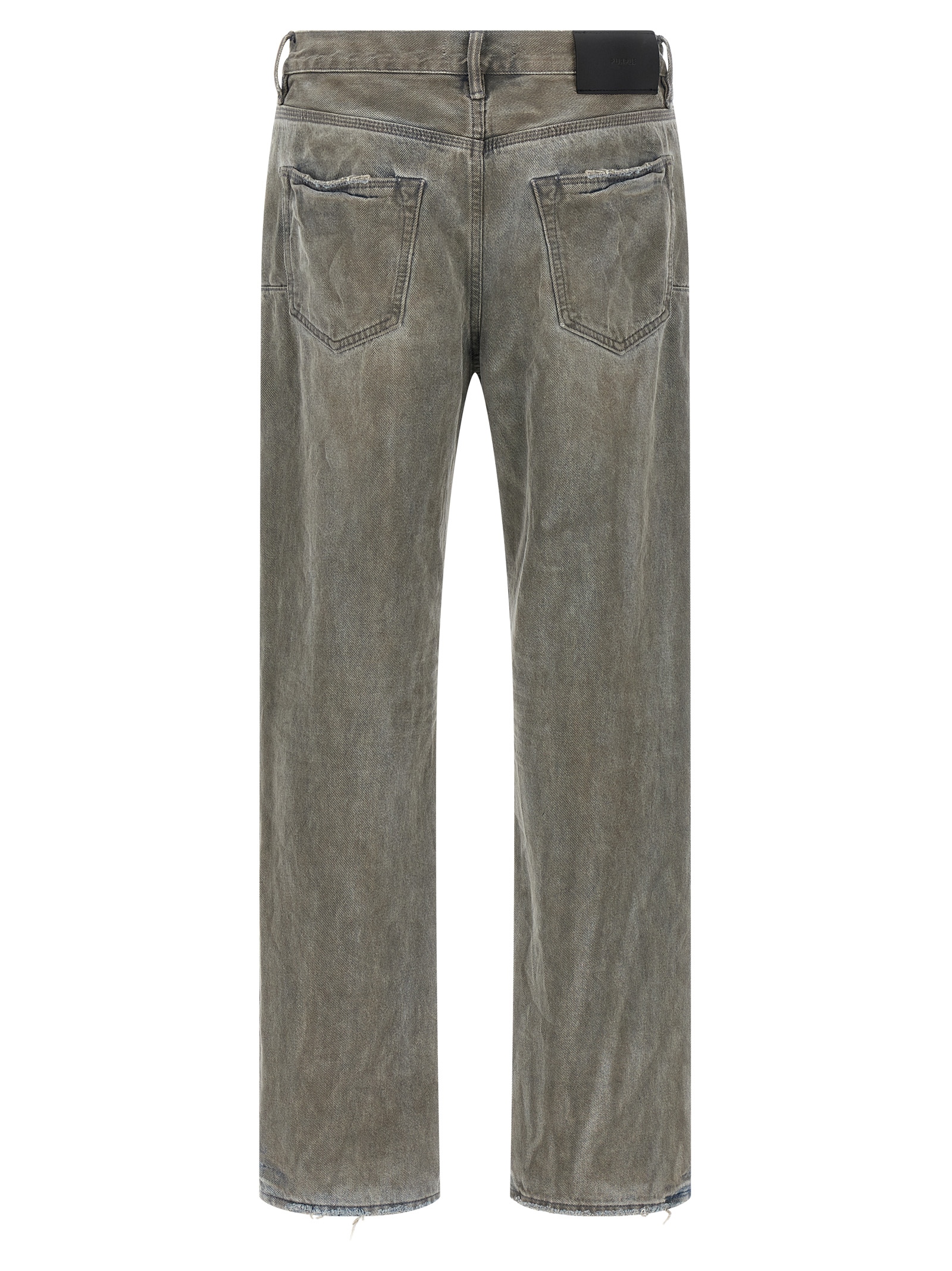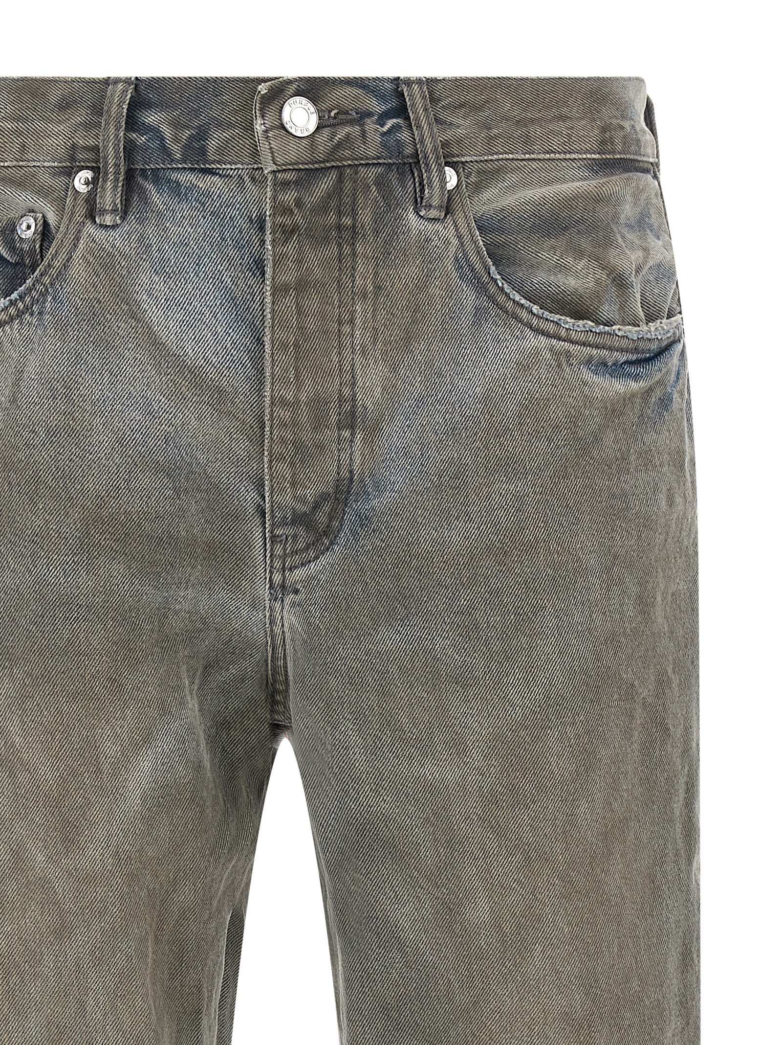 ‘P011 Arcilla Dirty’ cotton denim jeans with abrasions, color wash and used details, five pockets, front button closure, straight leg, back logo tag.