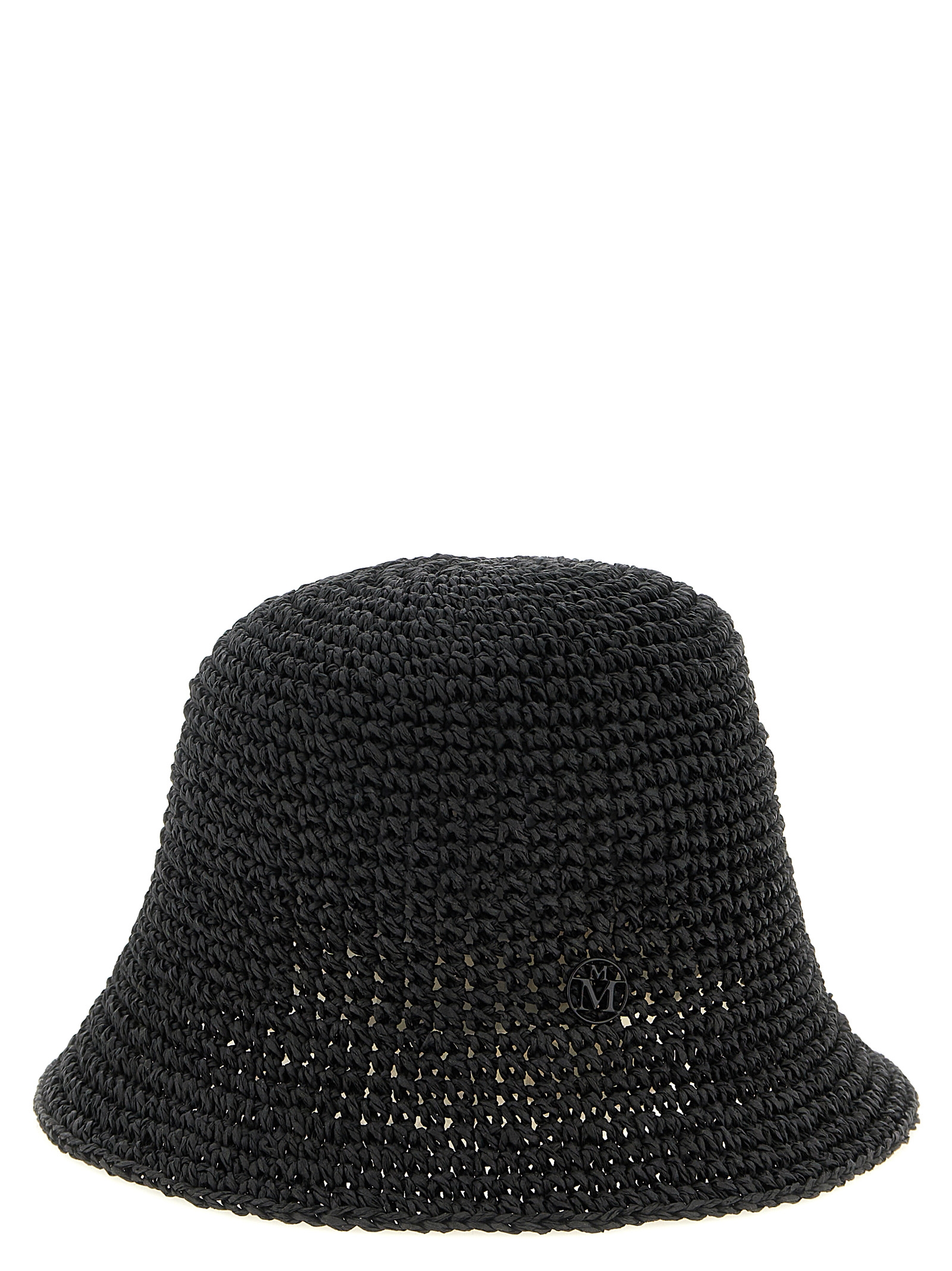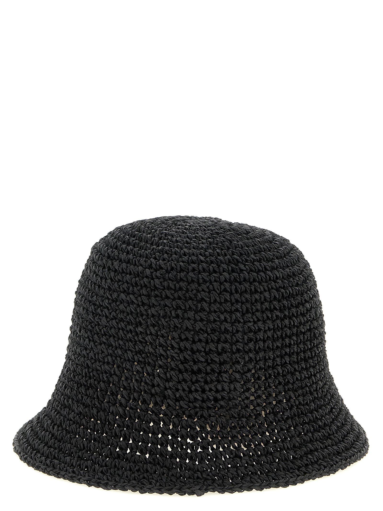 ‘Pablo’ crochet straw hat, cloche model, metal logo appliqué.