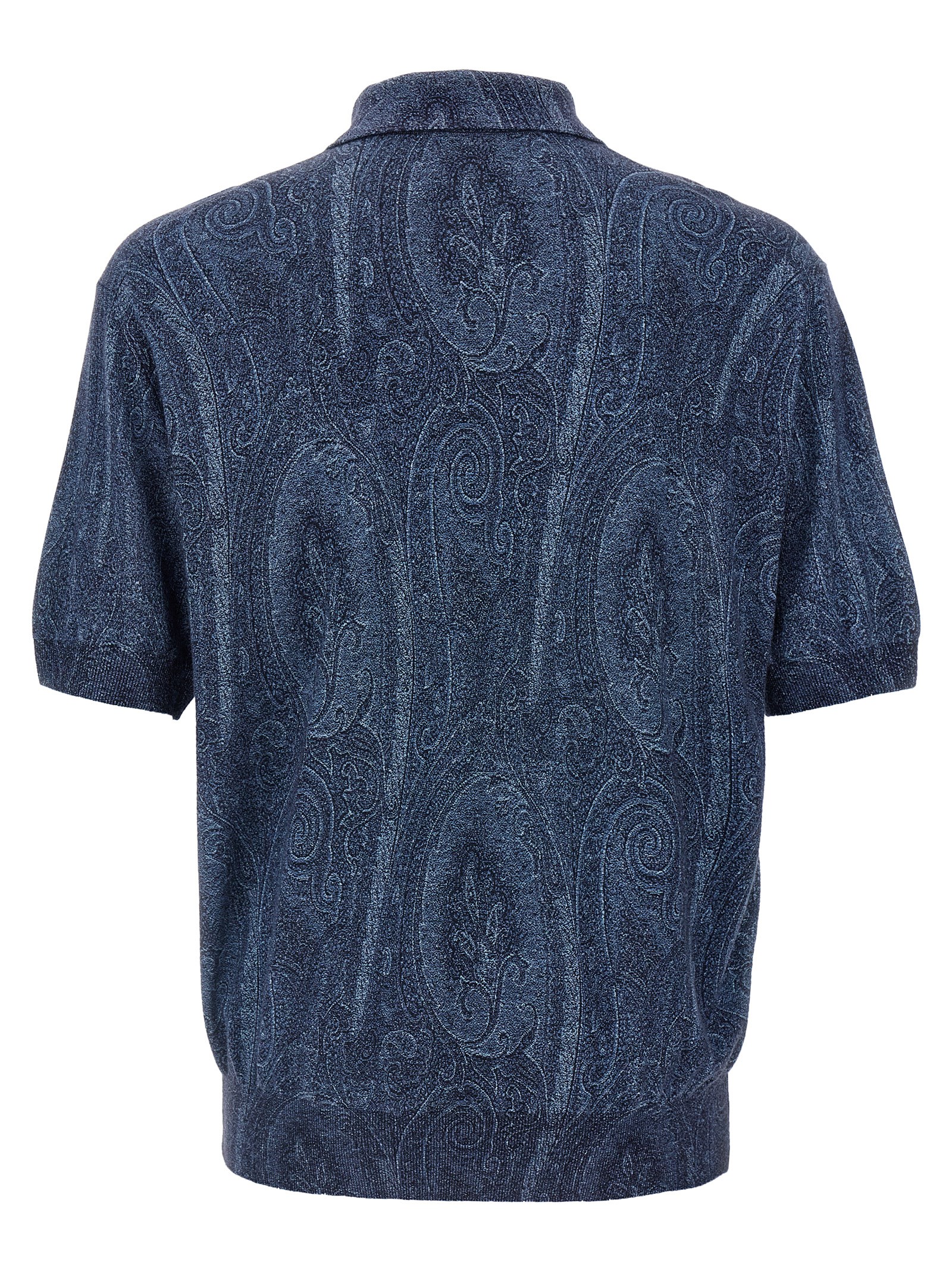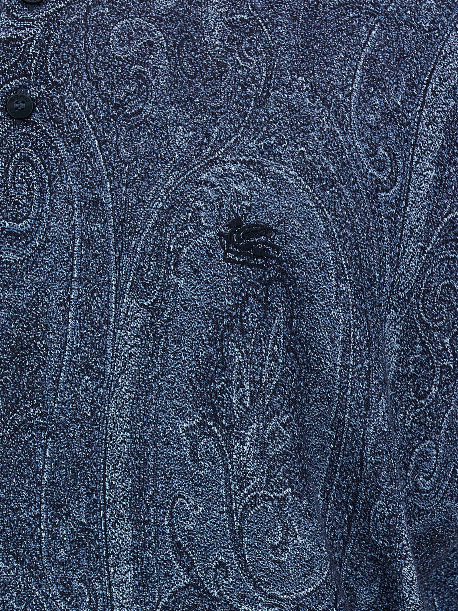 Polo shirt in silk and cashmere with all-over ‘Paisley’ print, front logo embroidery, and short sleeves.