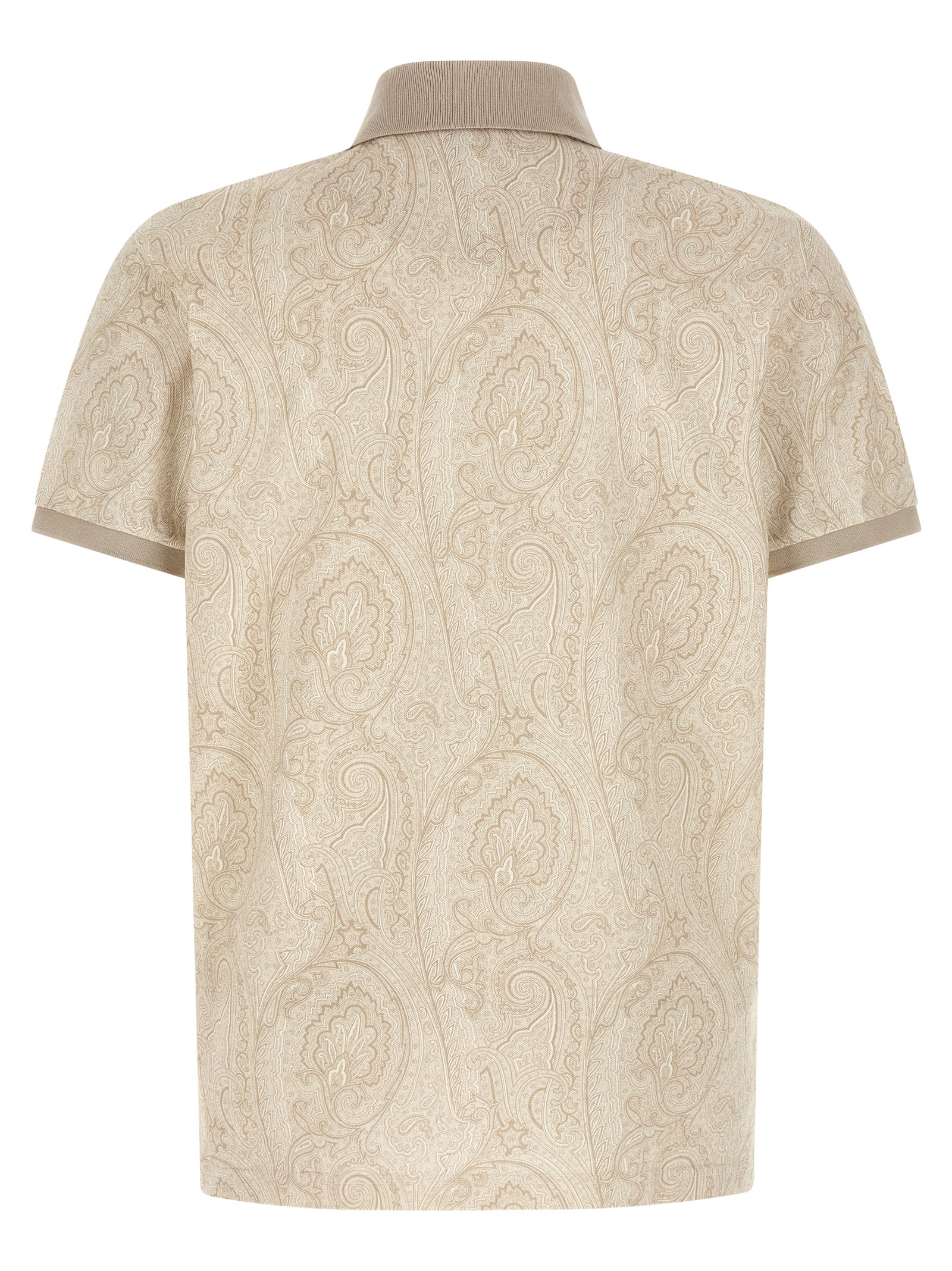 Pure cotton piquet polo shirt with iconic all-over ‘Paisley’ pattern, tone-on-tone ‘Pegaso’ logo embroidery on the front, collar and buttons, short sleeves with cuffs, side slits, and asymmetrical hem.