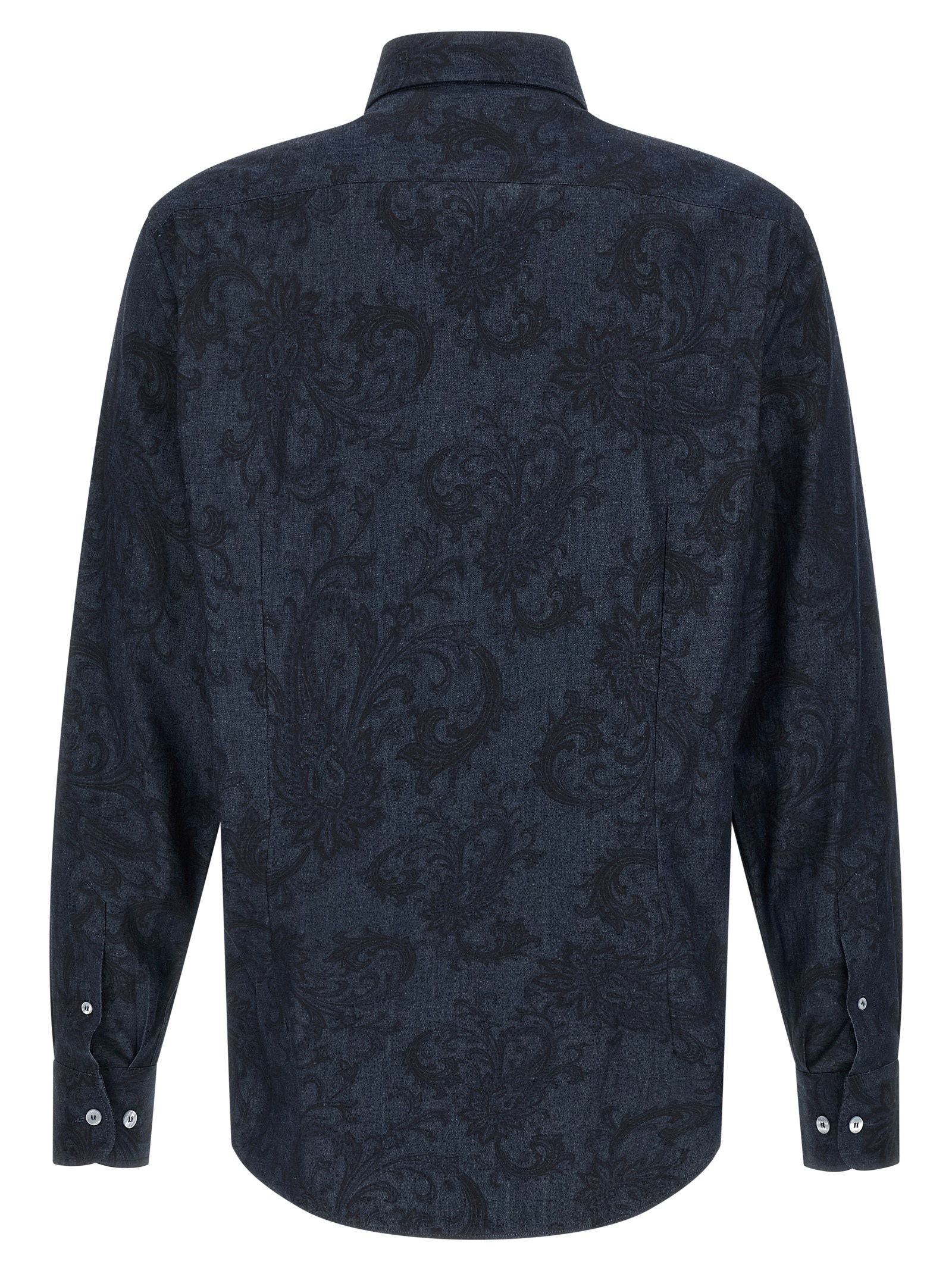 All-over ‘Paisley Ramage’ pure cotton denim shirt, ‘Pegaso’ logo embroidery, front button closure, long cuffed sleeves.