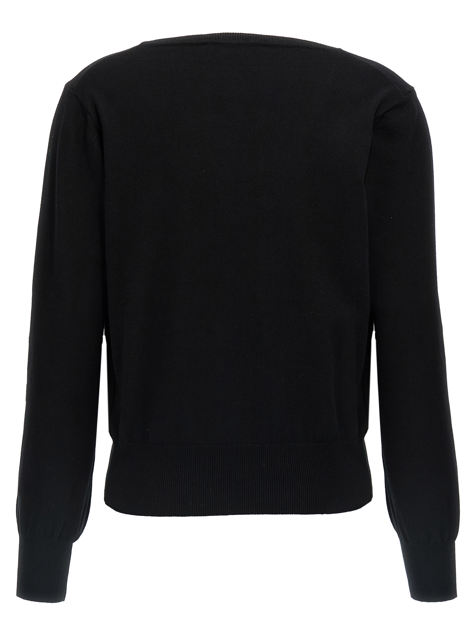 ‘Pamela’ cotton and cashmere blend sweater with shawl collar, front logo embroidery, long cuffed sleeves.