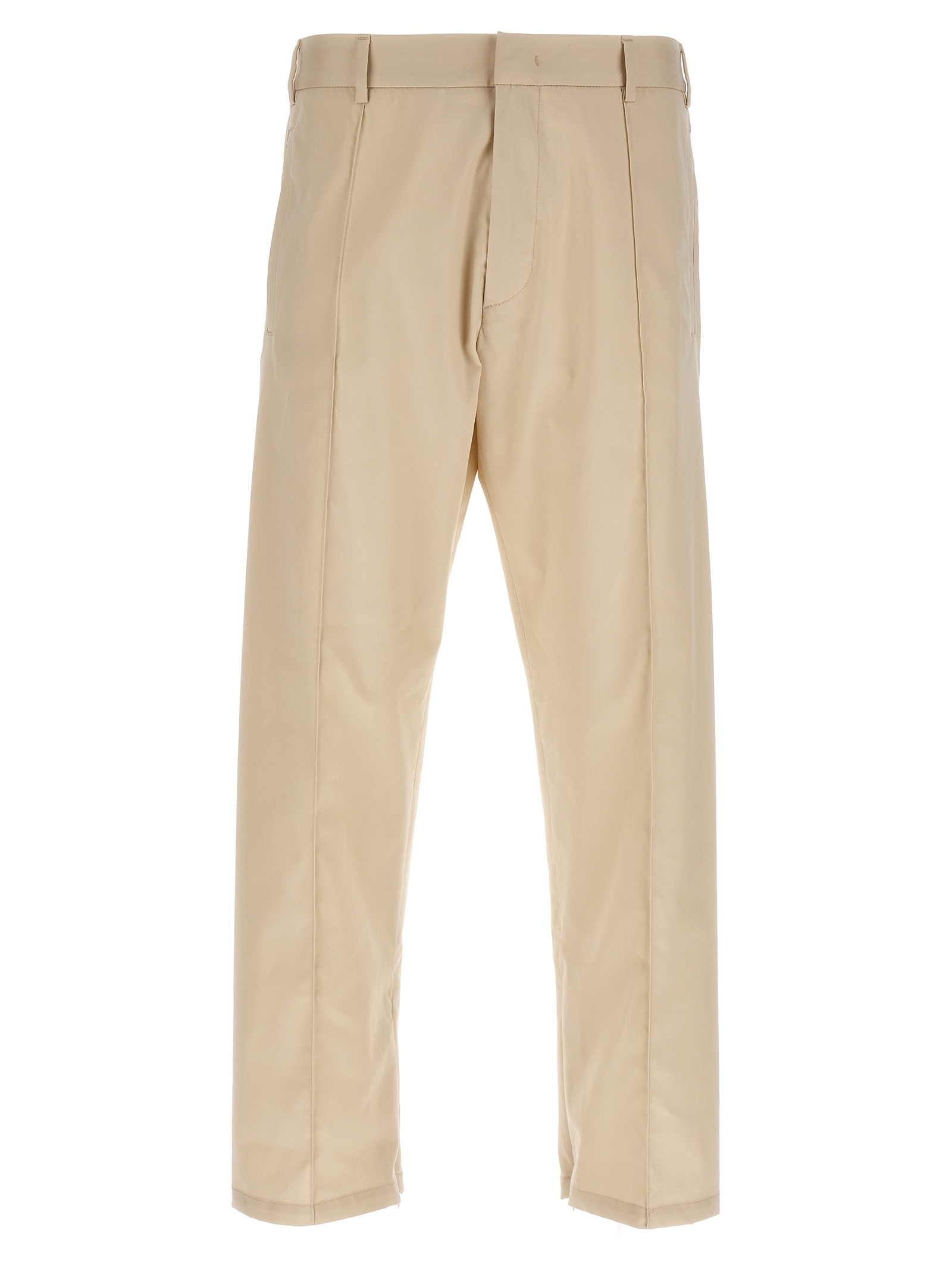 Cotton blend pants featuring front pleats, hook-and-eye zip and button closure, elastic waistband at the back, pockets.