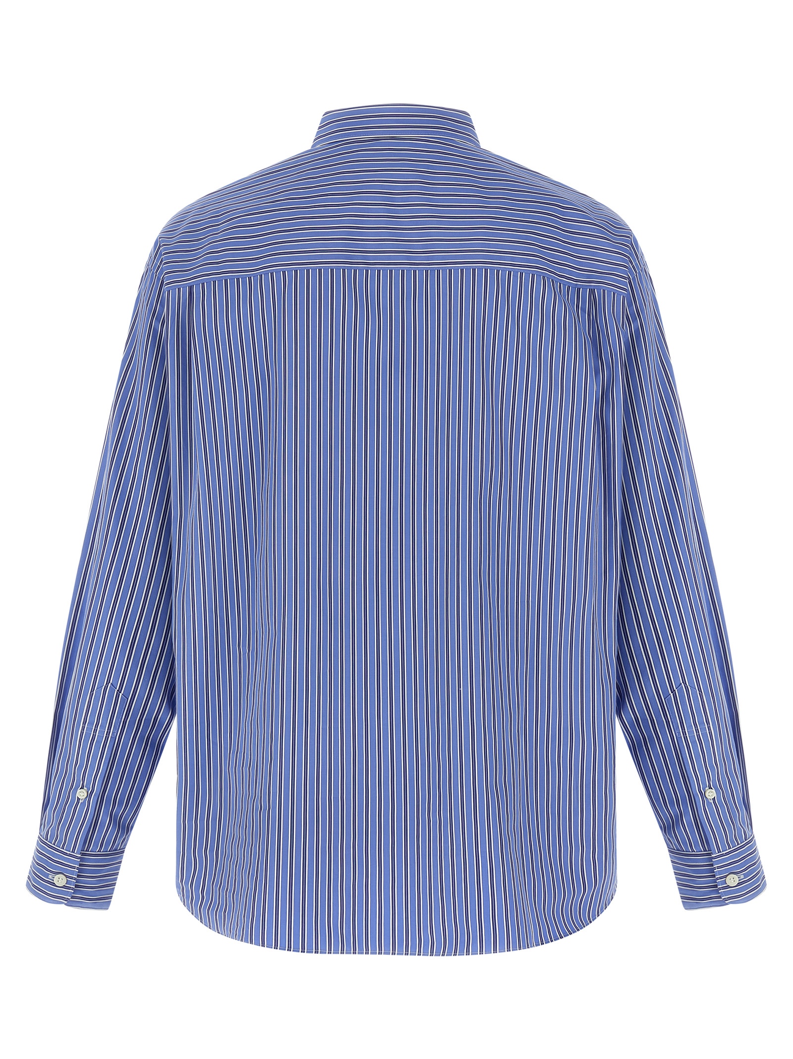 Striped cotton poplin shirt, front patch and embroidery, button closure, long sleeves with cuffs and dropped shoulders.
