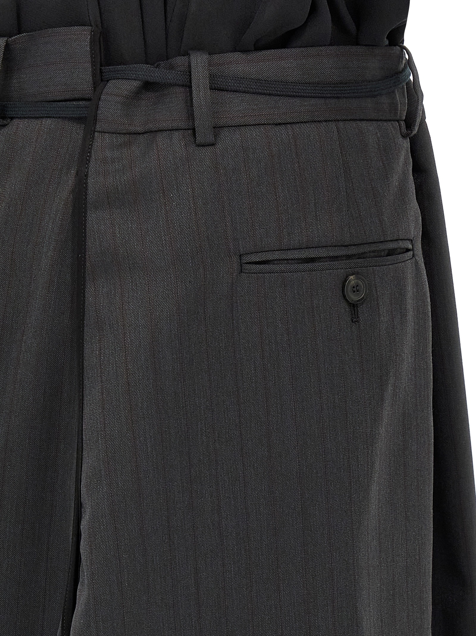 ‘Patched Slip’ long dress in technical georgette with lingerie top with lace details and asymmetrical shoulder straps, V-neck, sleeveless skirt with zip and front button closure, wallet model with drawstring at the waist, pockets, back split.