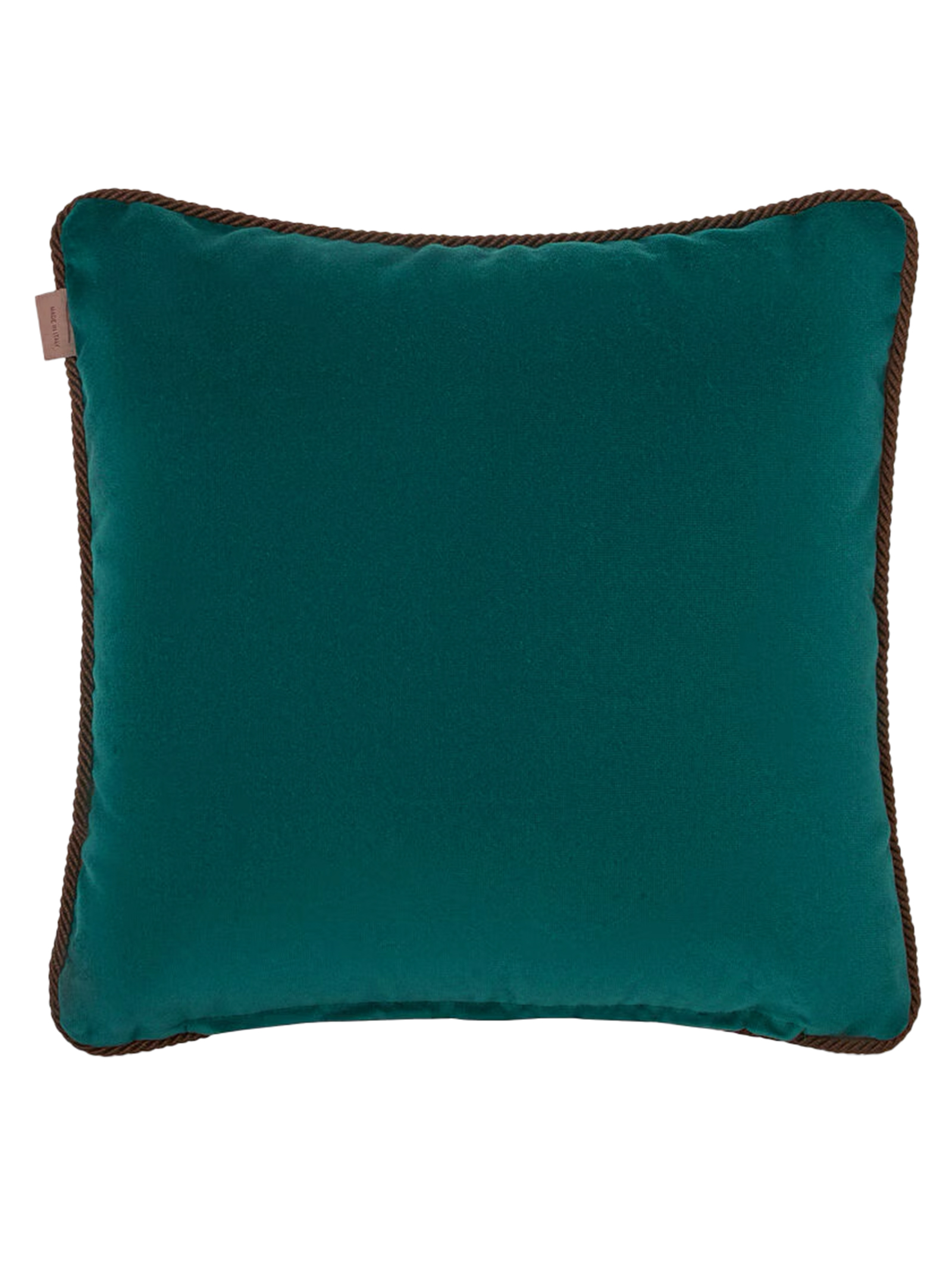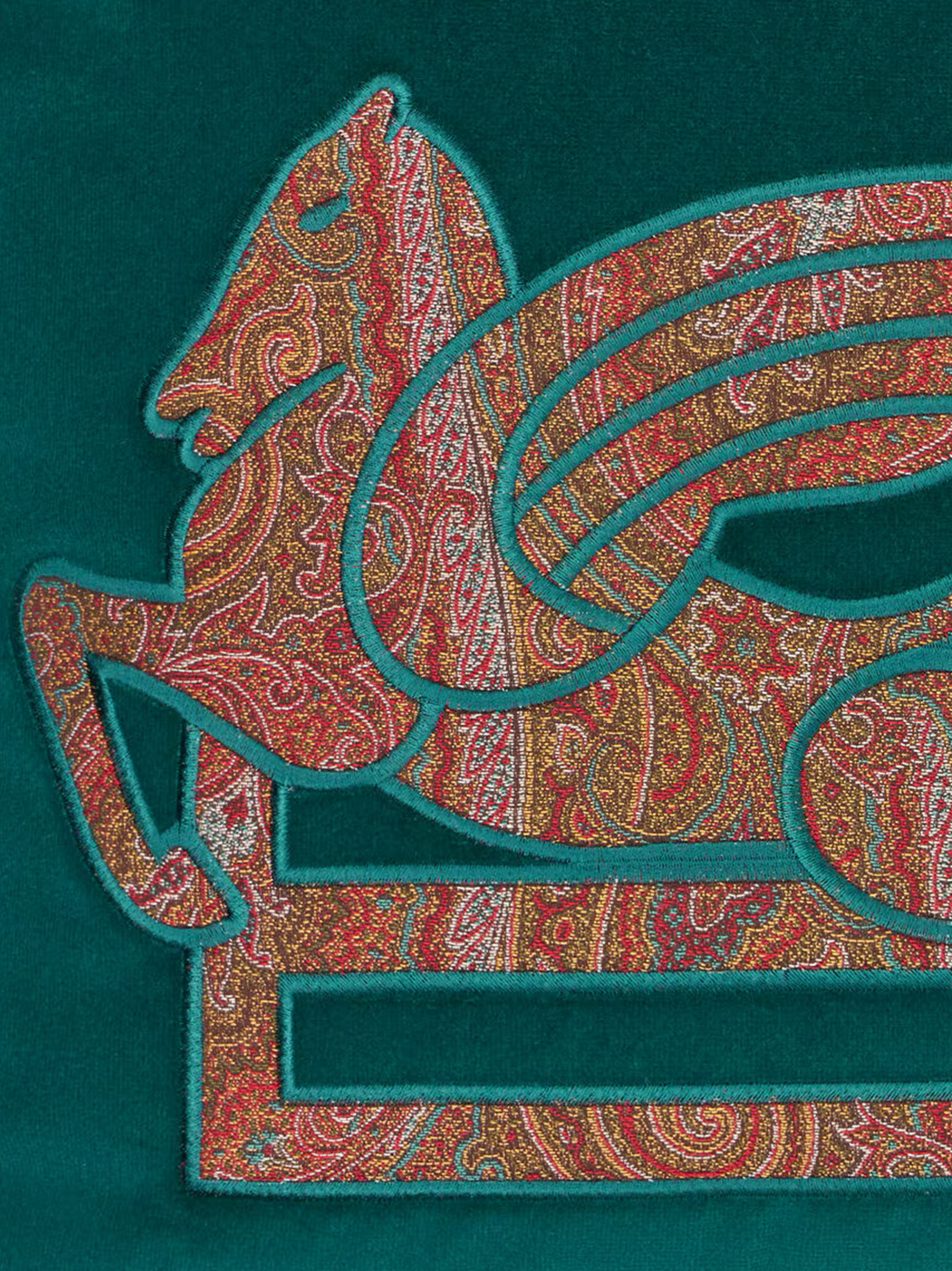 Cotton velvet cushion, logo embroidery and ‘Pegaso’ in the iconic Paisley jacquard fabric finished with a thread embroidery.