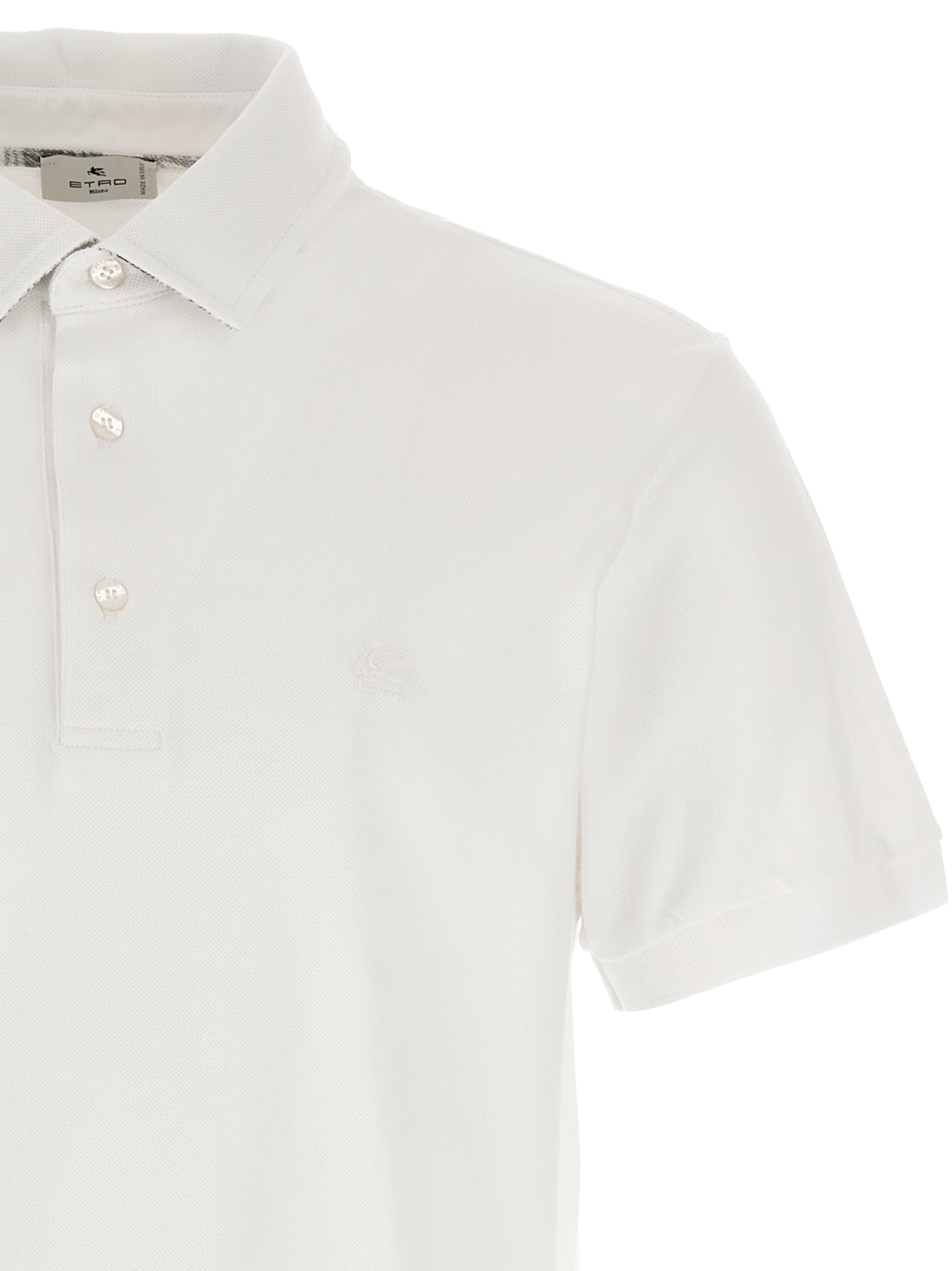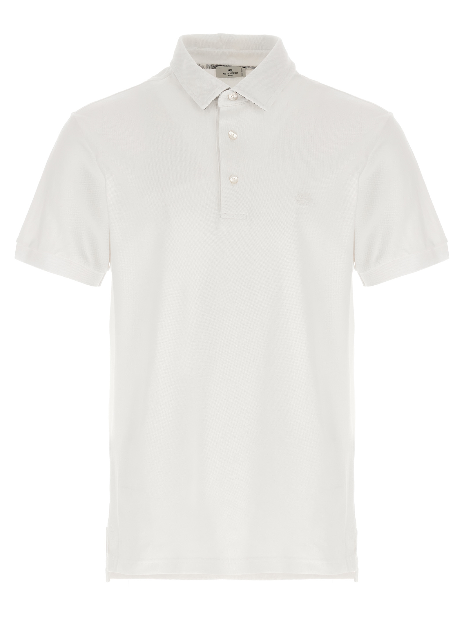 Piqué cotton polo shirt, collar with floral Paisley print and buttons, tonal ‘Pegaso’ logo embroidery on the front, short sleeves, side splits.