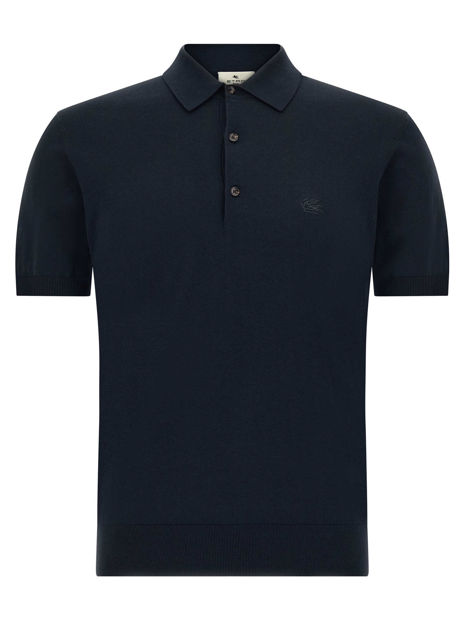 Cotton polo shirt, tone-on-tone ‘Pegaso’ embroidery on the front, collar and buttons, short sleeves with cuffs, and band on the hem.