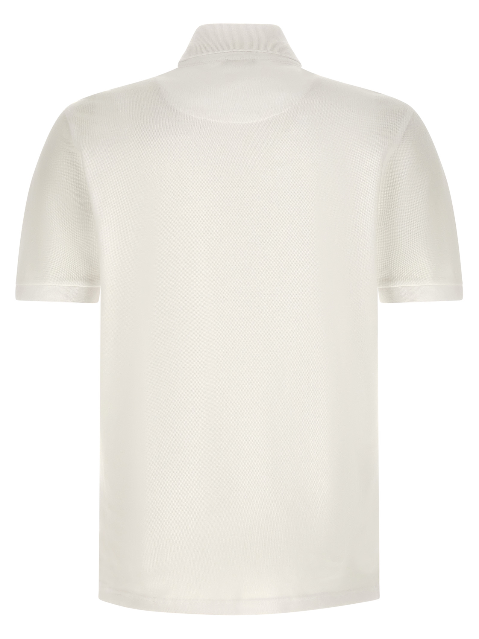 Piqué cotton polo shirt, tone-on-tone ‘Pegaso’ embroidered logo on the front, collar and buttons with floral print lining, short cuffed sleeves, side slits.