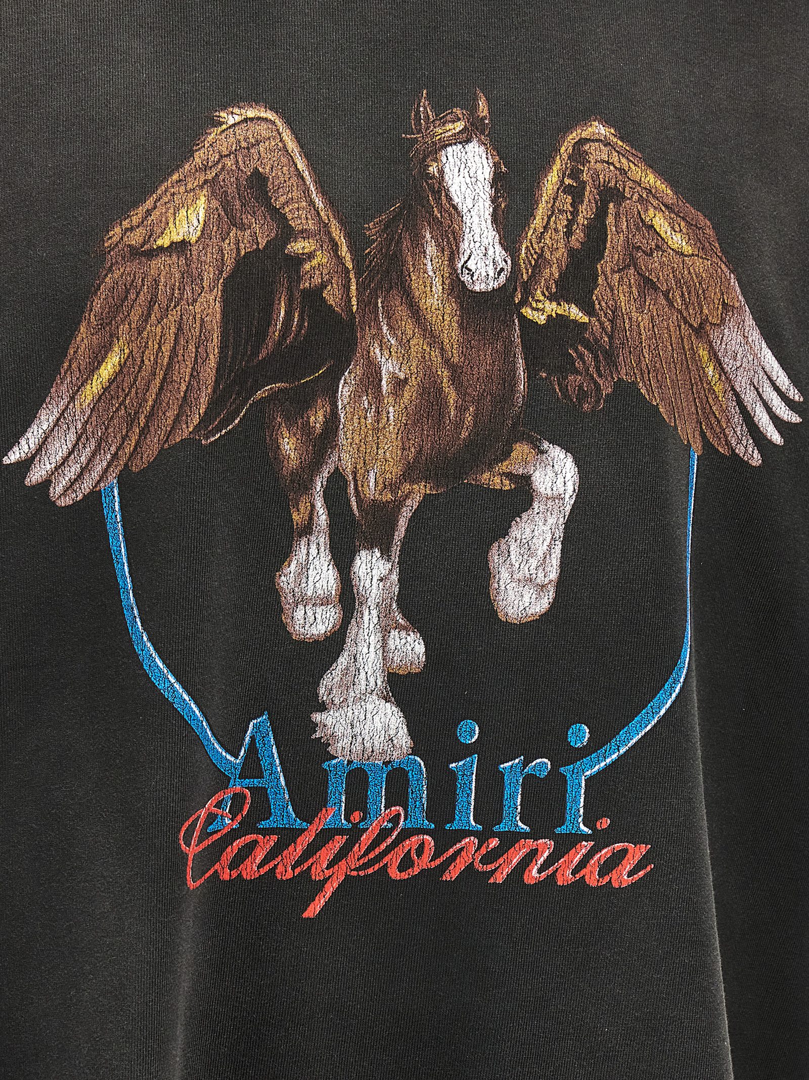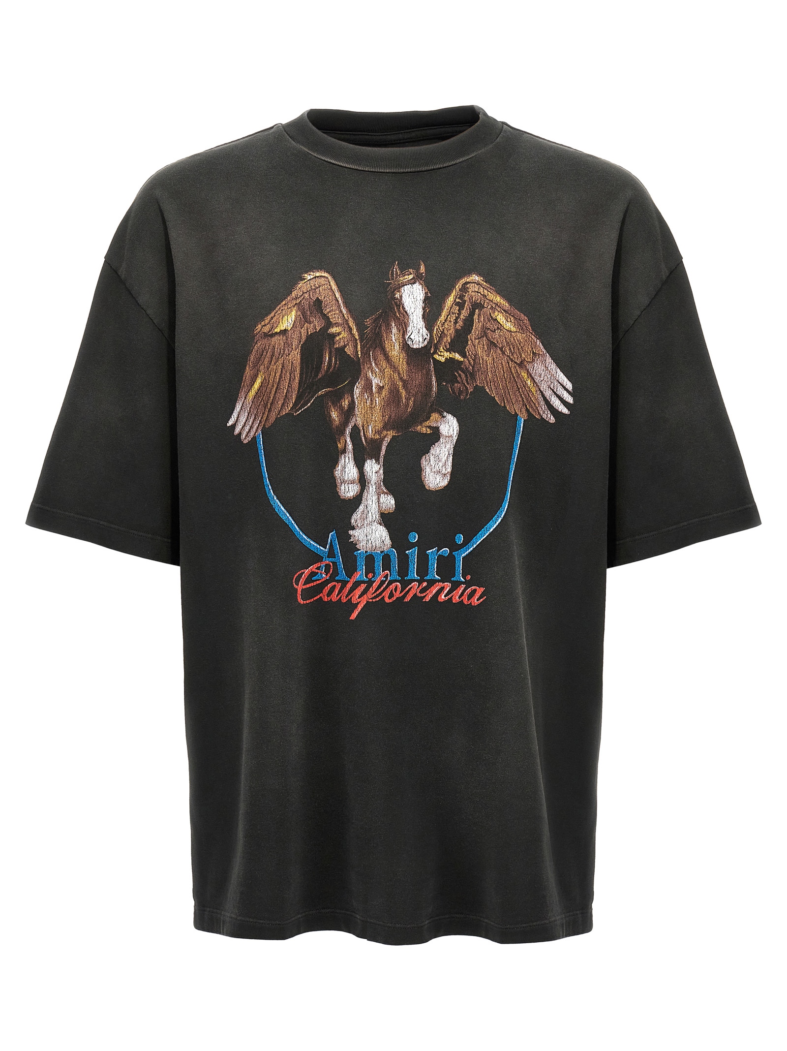 ‘Pegasus’ used-effect sustained cotton t-shirt, vintage front print, crew neck, short sleeves.