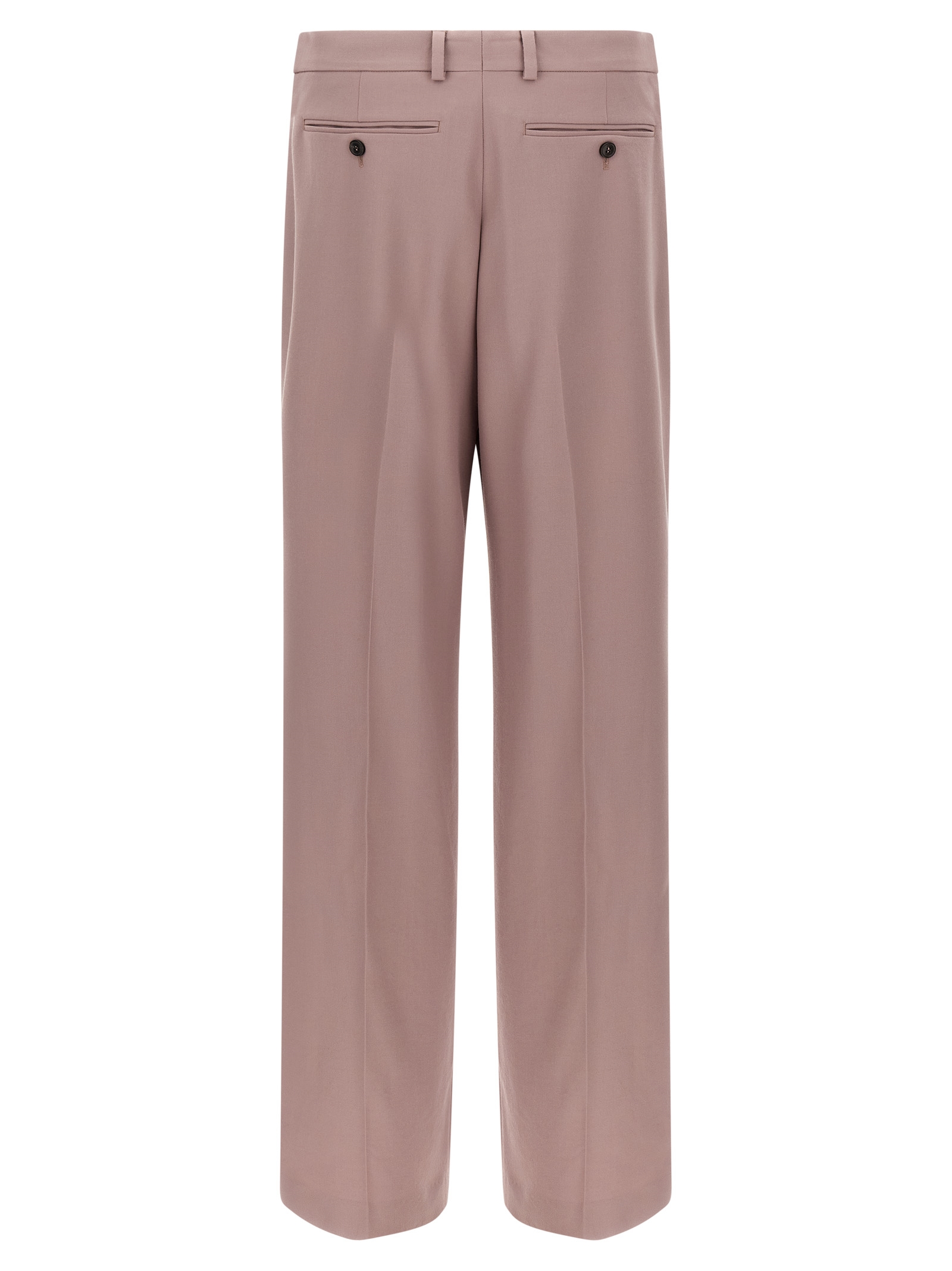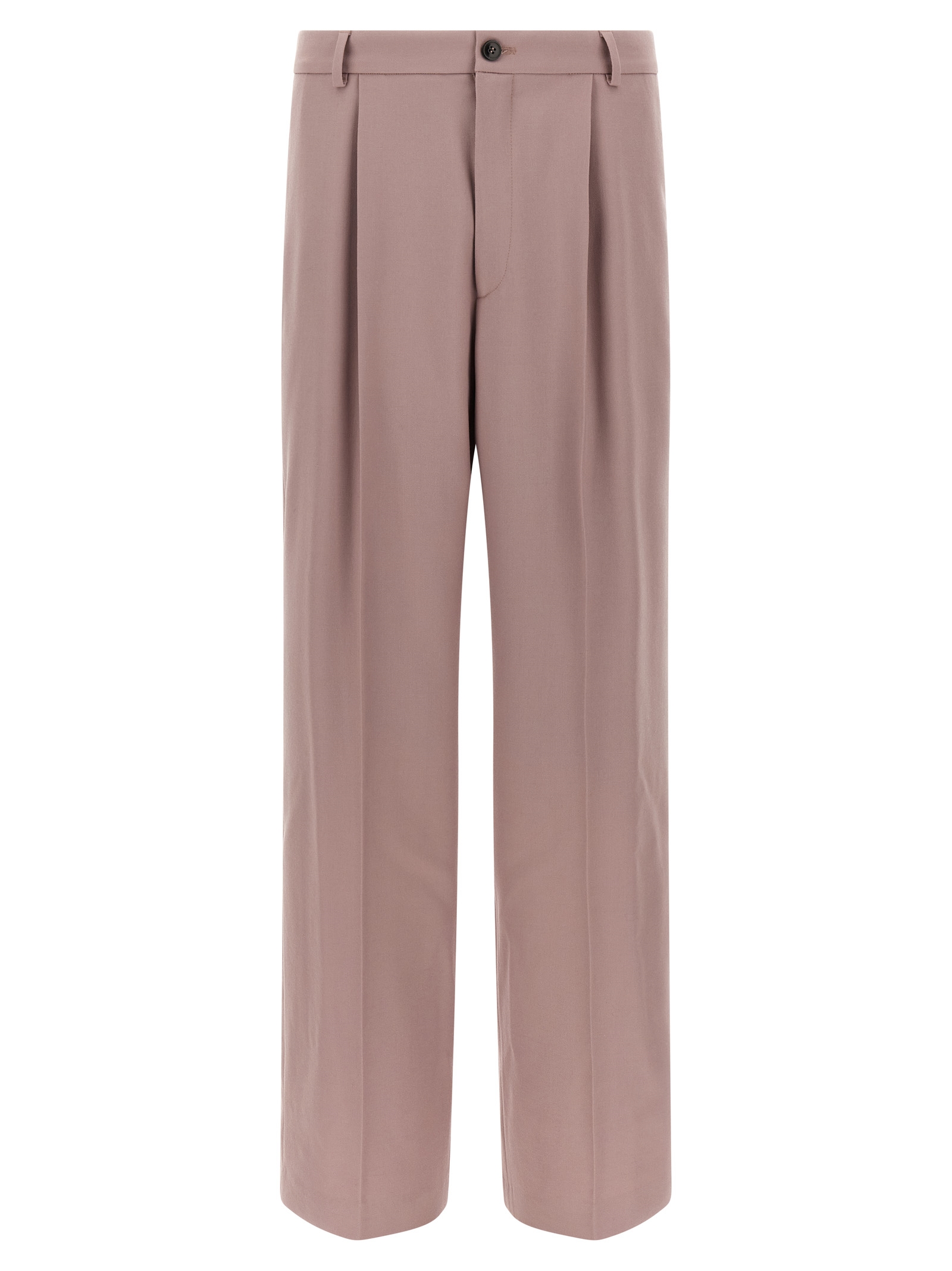 ‘Penrud’ wool pants, pince, stretched pleat, wide and straight leg, front zip and button closure, pockets.