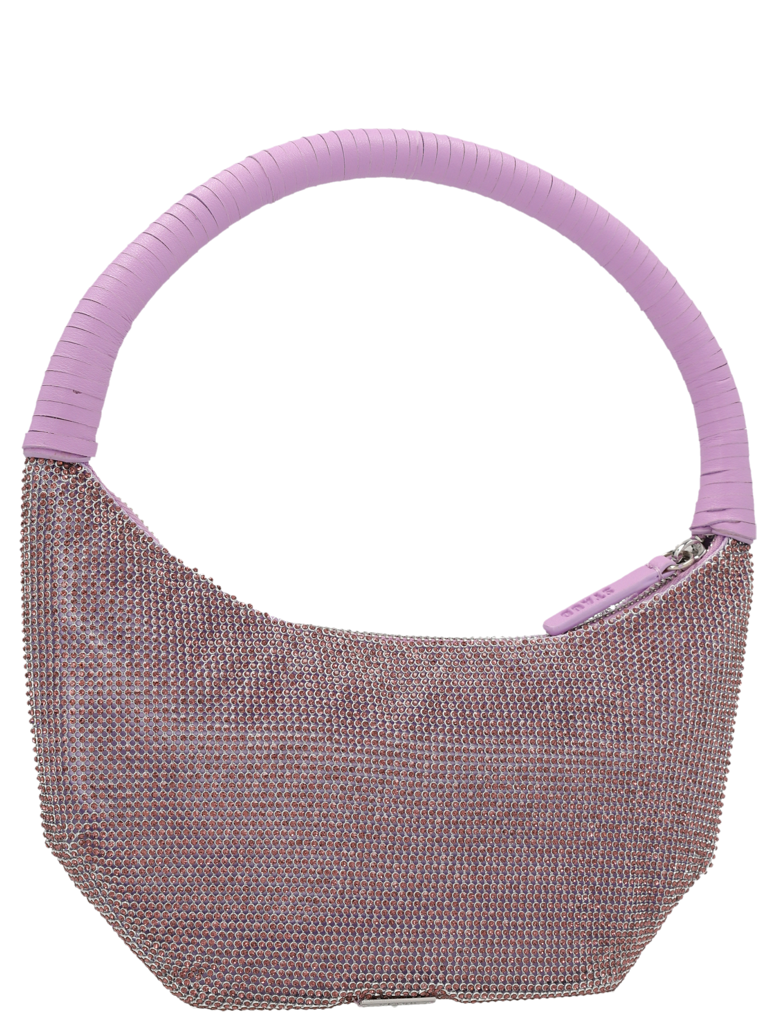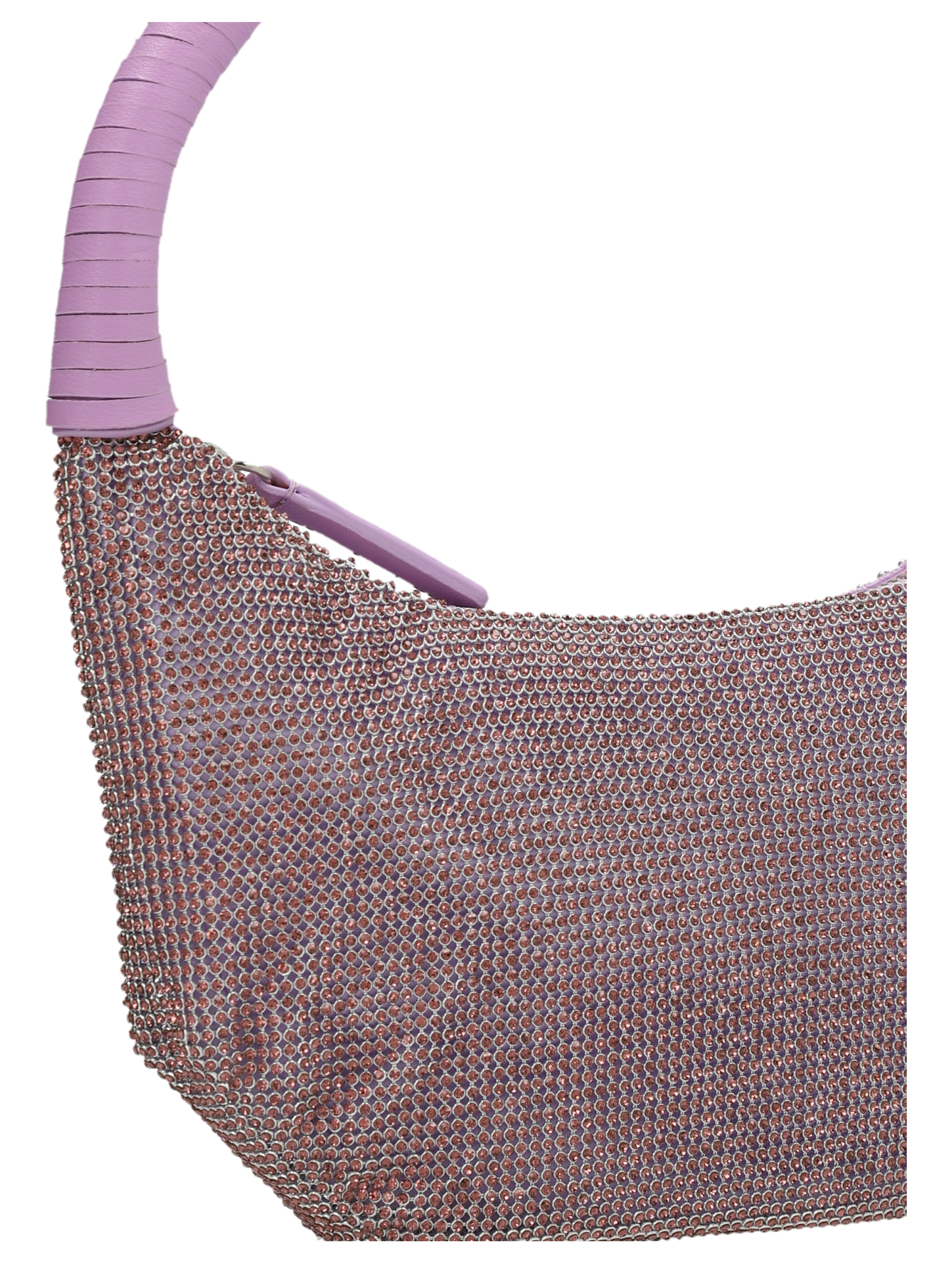 ‘Pepper Crystal’ handbag with all-over rhinestone embellishment, zip closure, plaited leather handle.