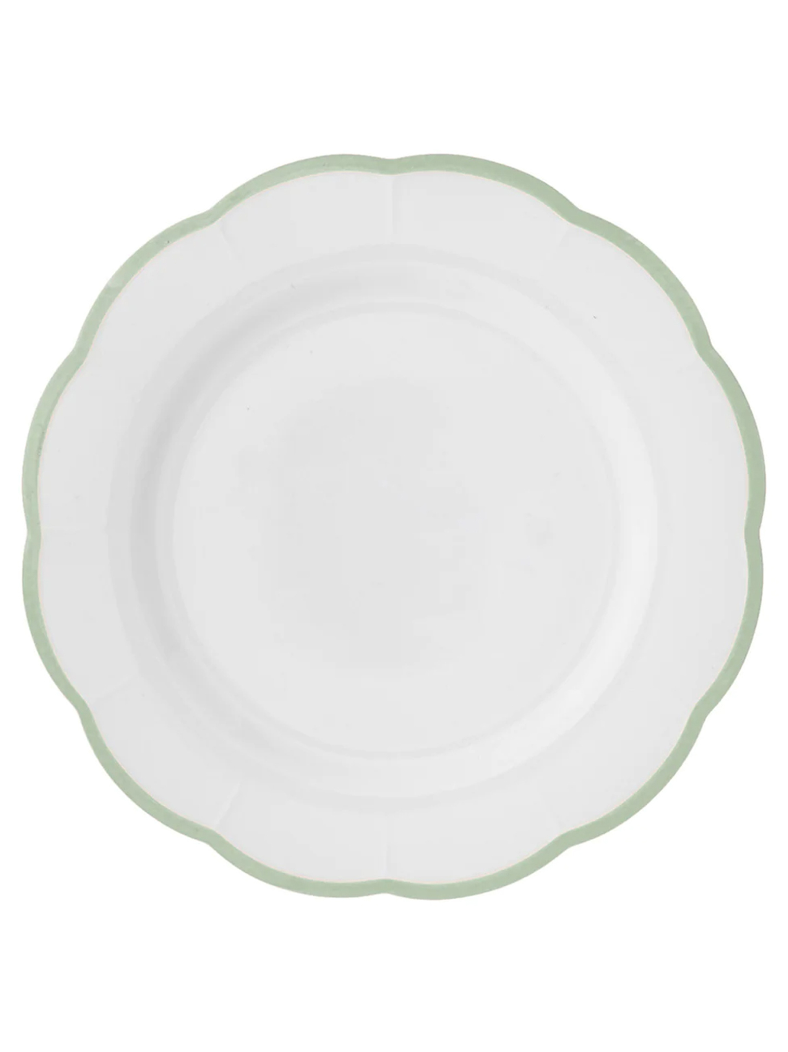 ‘Petalo’ dinner plate, white ironstone material with a blue scalloped edge. Suitable for dishwasher, suitable for microwave.