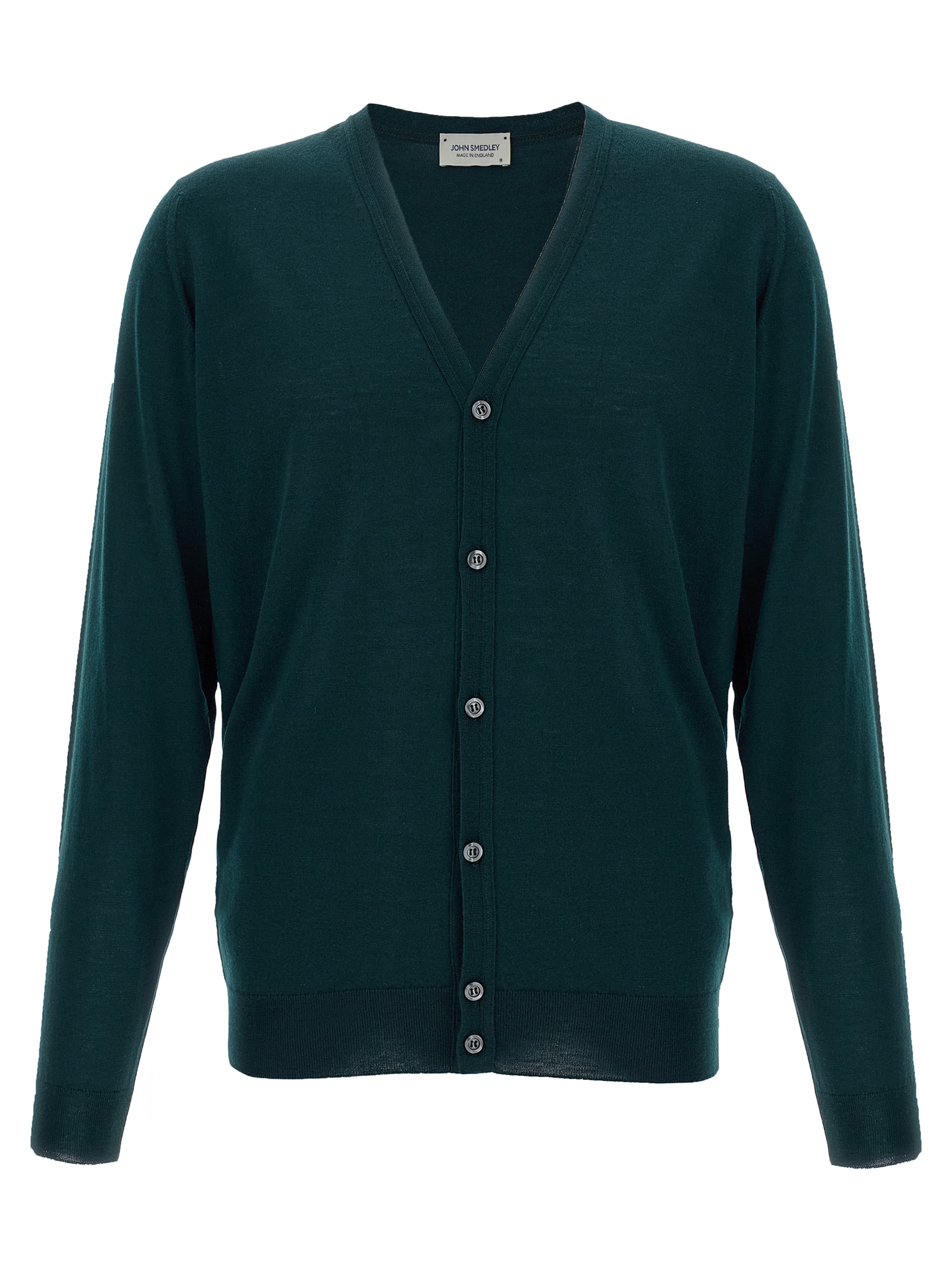 ‘Petworth’ wool cardigan with button closure, long cuffed sleeves.