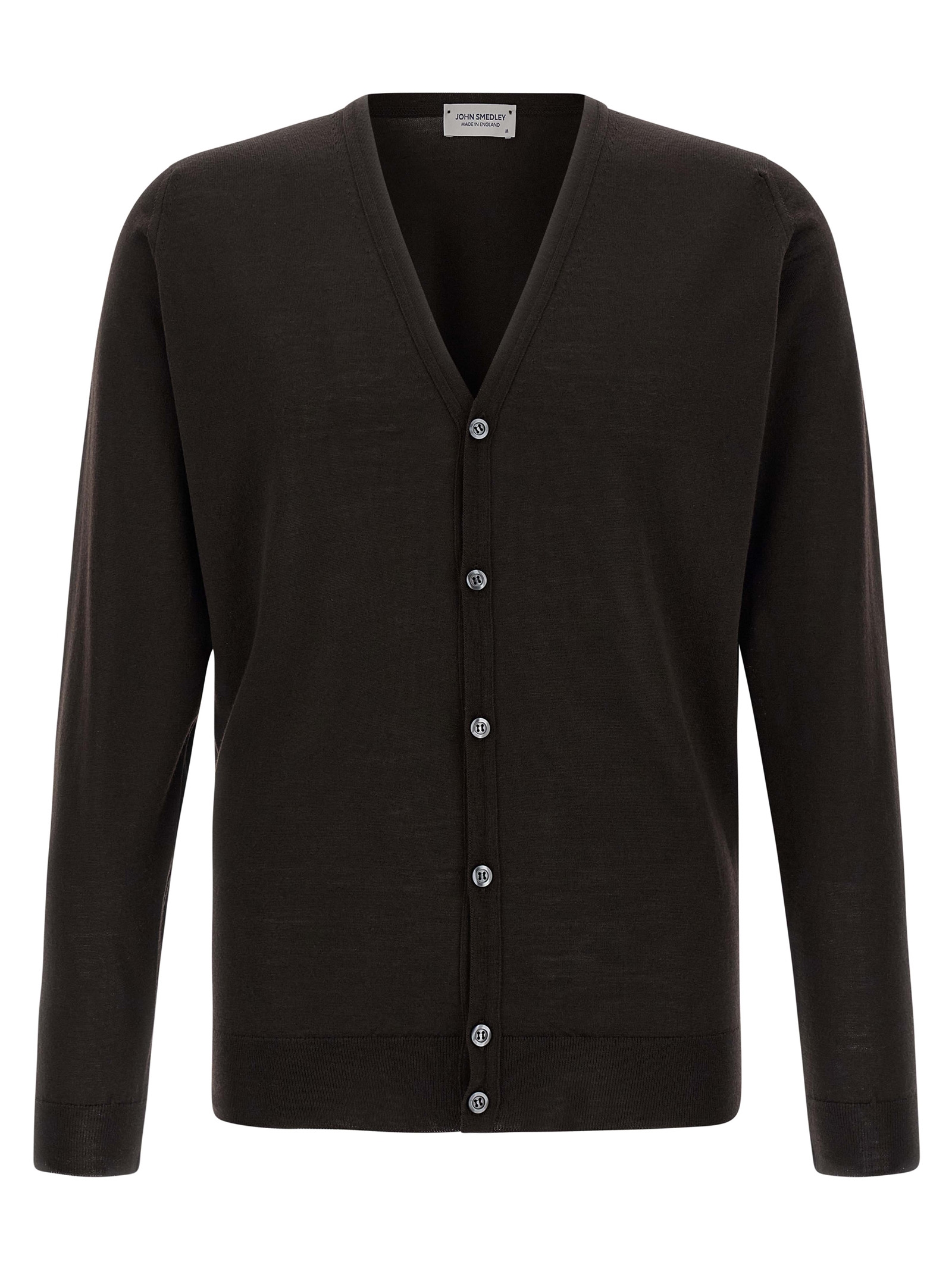 ‘Petworth’ wool cardigan with button closure, long cuffed sleeves.