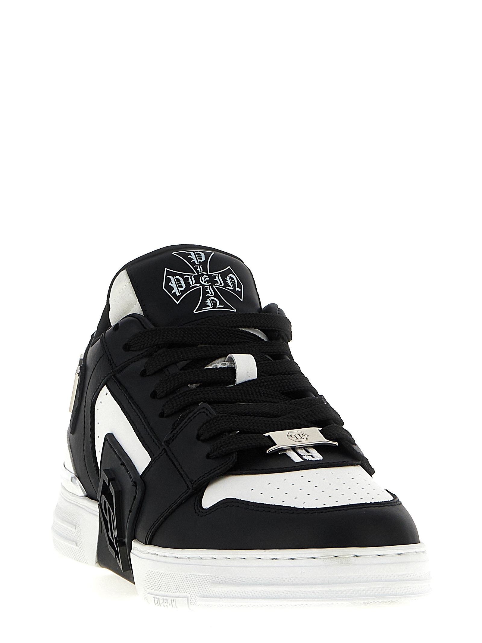 ‘Phantom Kicks’ leather sneakers, rubberized patch with side logo, lace-up closure, nickel-plated spoiler inserted between heel and midsole, Saffiano leather band with metal lettering logo at the back, padded ankle and tongue, rubber sole.