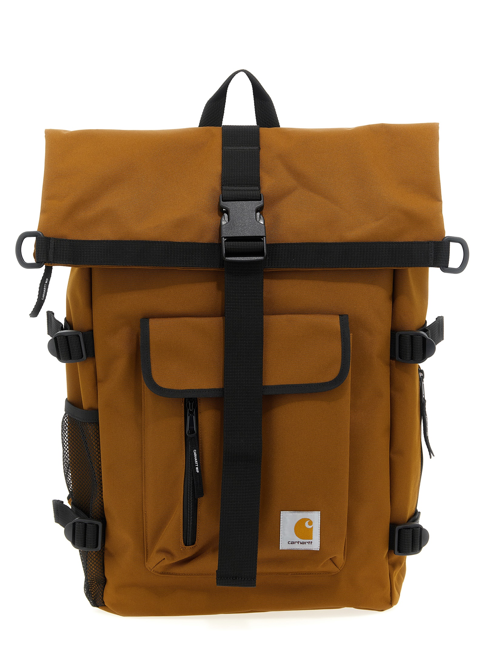 ‘Philis’ waterproof canvas backpack, flap closure with buckle and strap, adjustable shoulder straps.