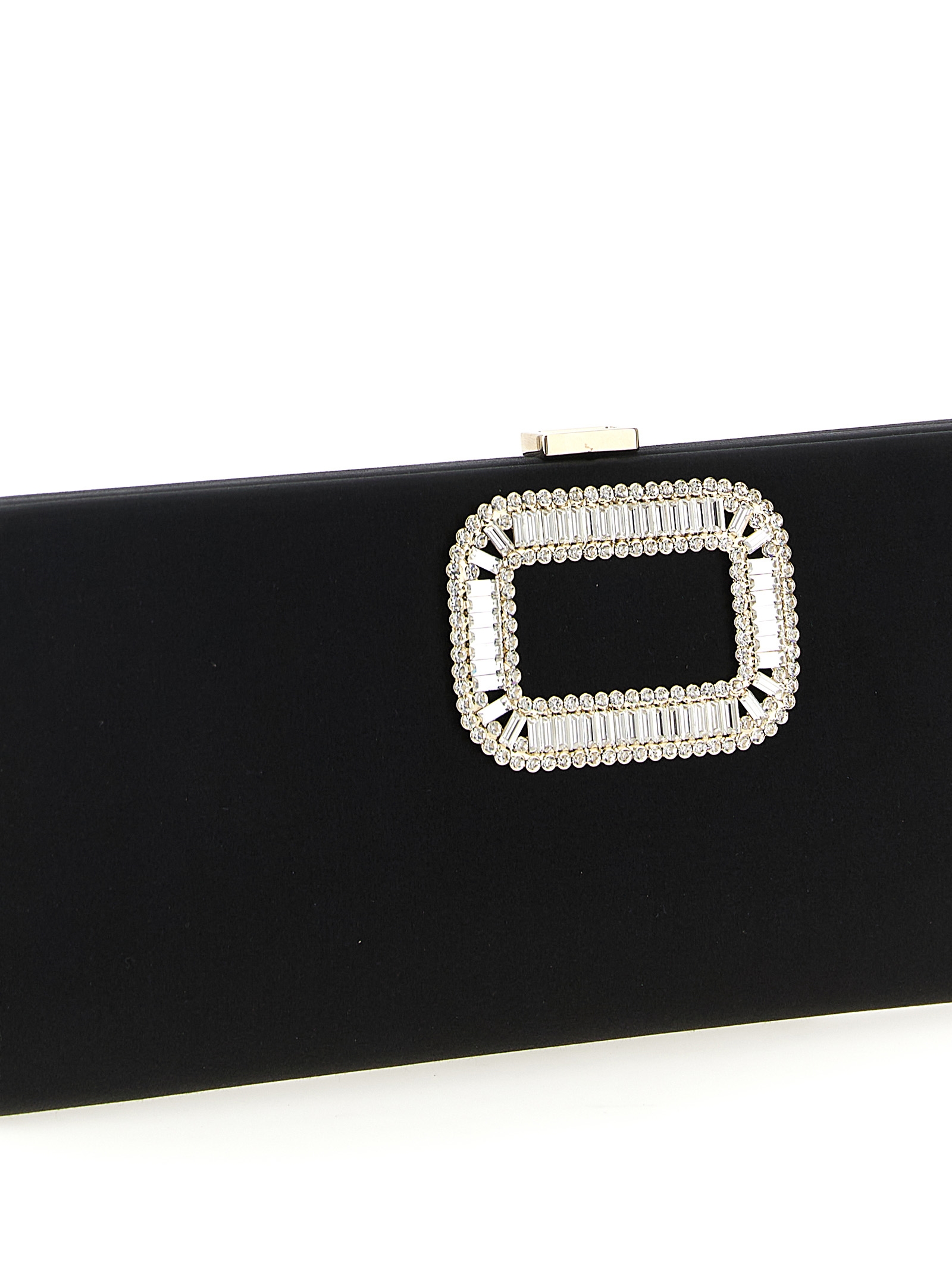 ‘Pilgrim Small’ satin clutch bag with front jewel buckle, metal snap closure.