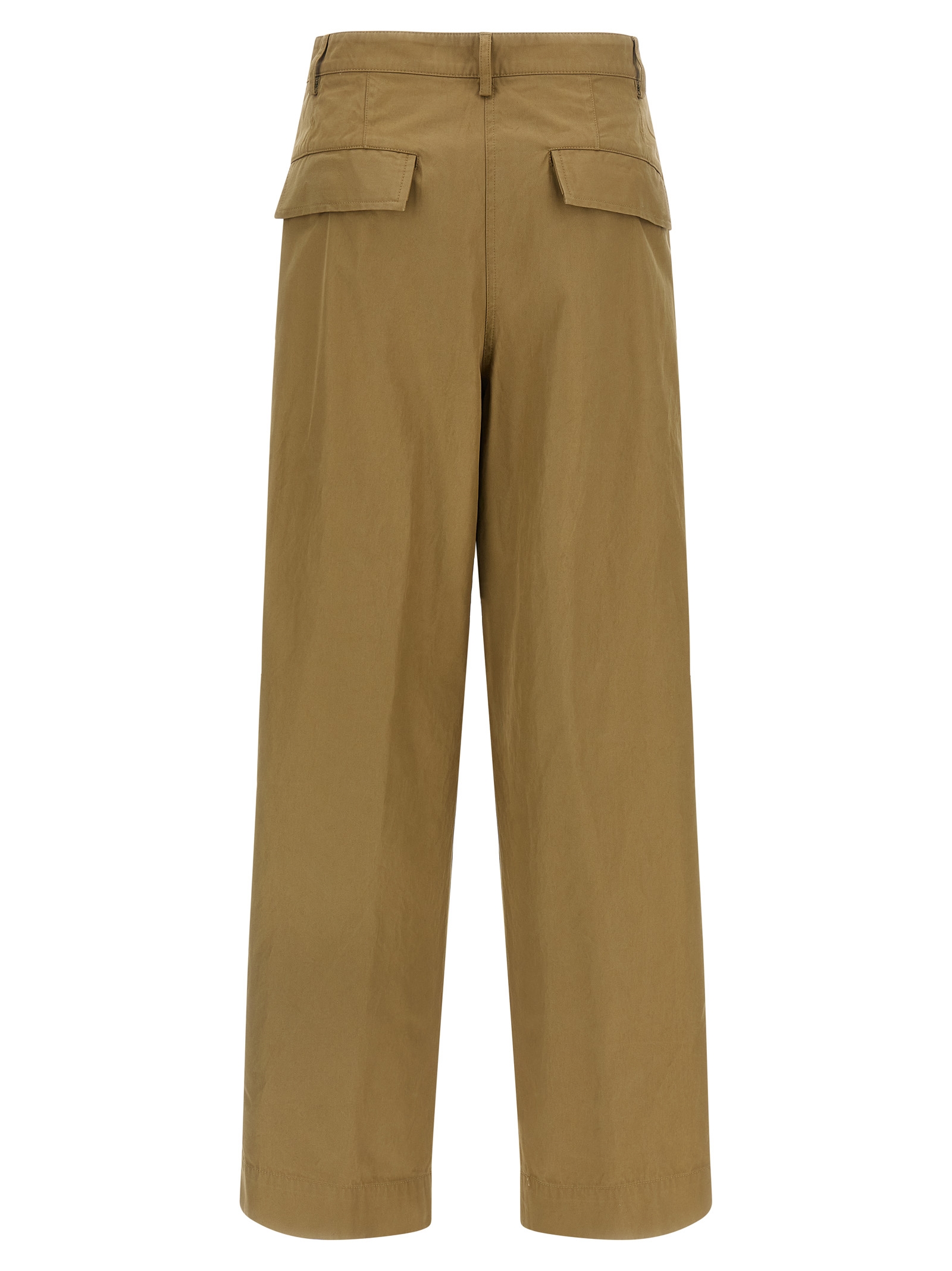 Pinks’ heavy cotton pants, pleat at the waist and knees, tapered leg, front zip and button closure, front American pockets, back welt pockets.
