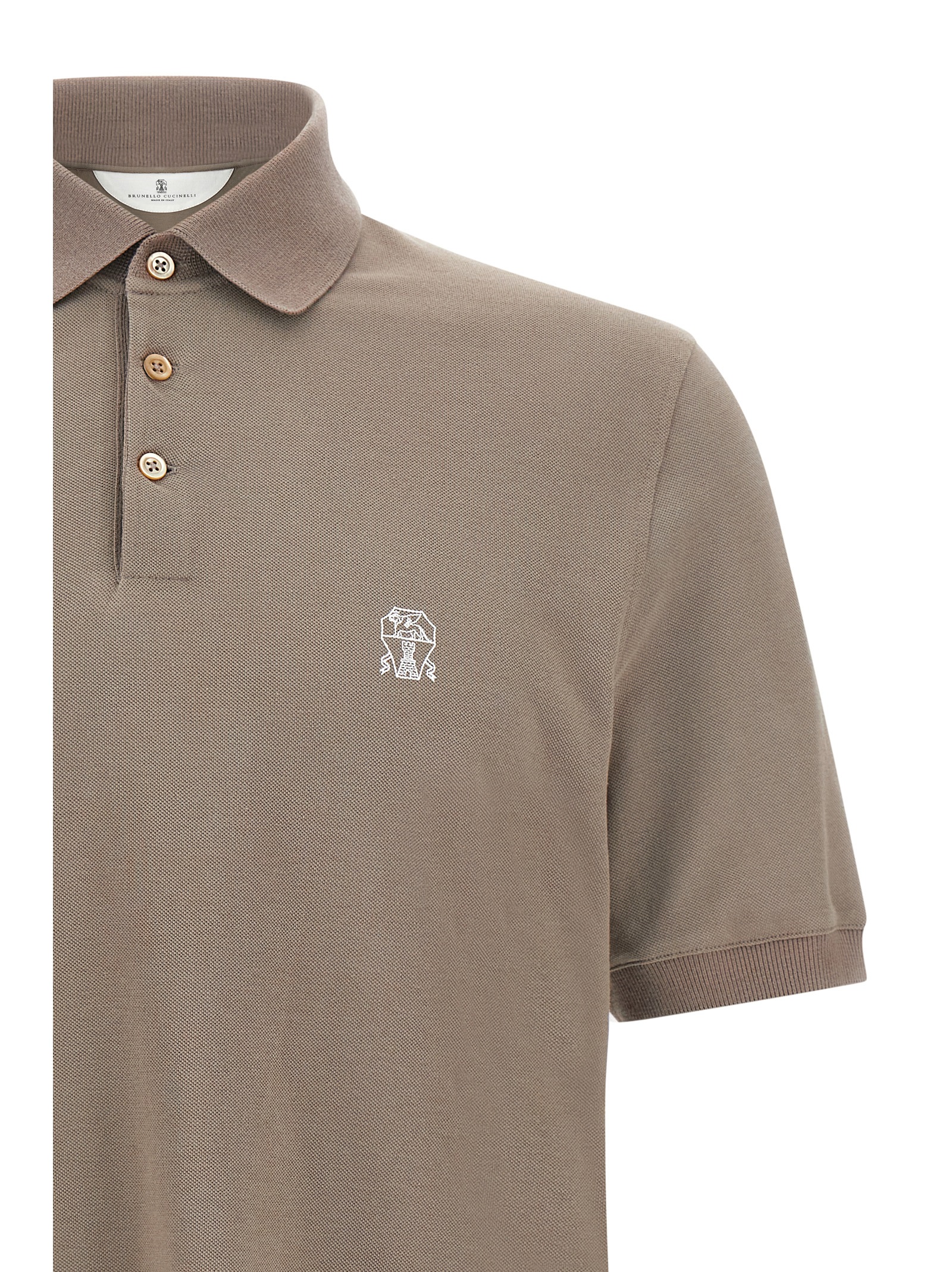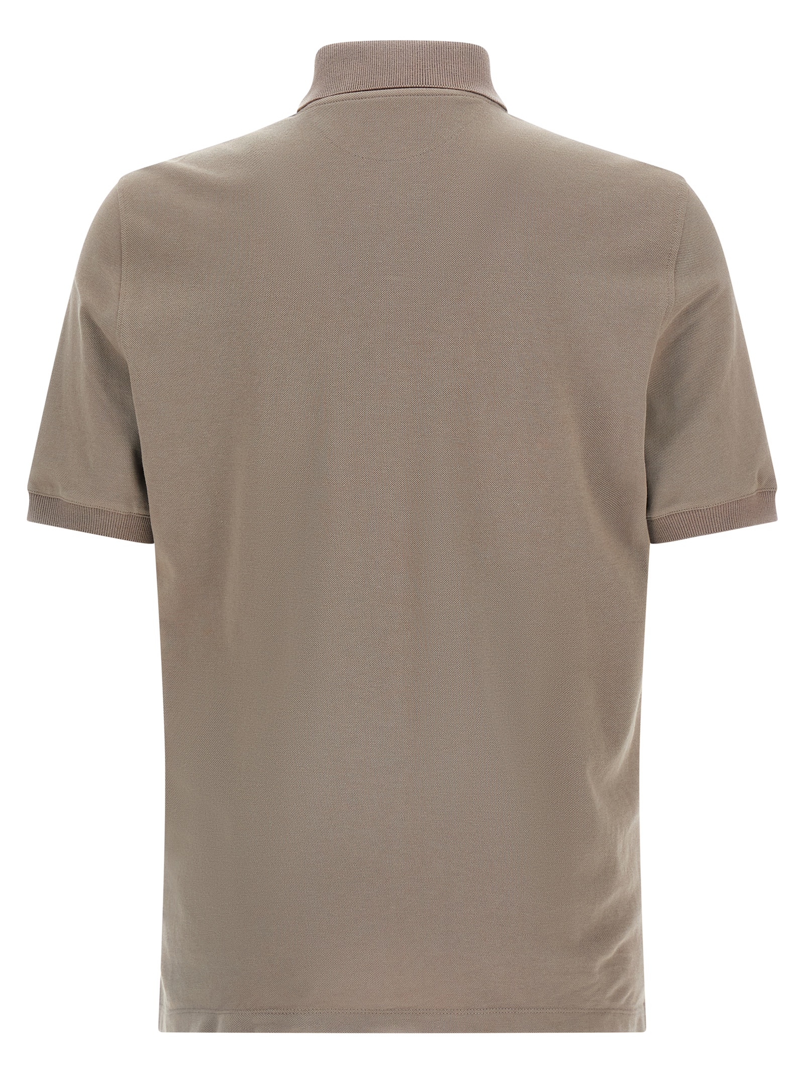 Piqué cotton polo shirt with front logo print, collar and buttons, short sleeves, side vents.