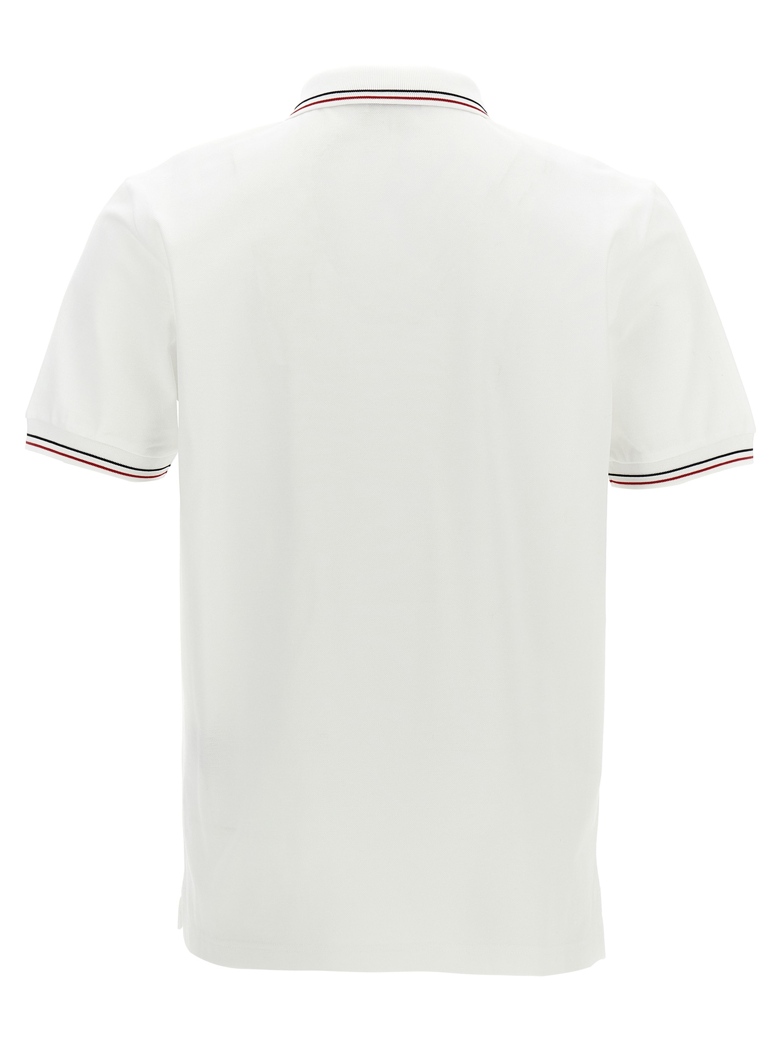 Piqué cotton polo shirt with contrasting details, front logo embroidery, collar and buttons, short sleeves, side splits.