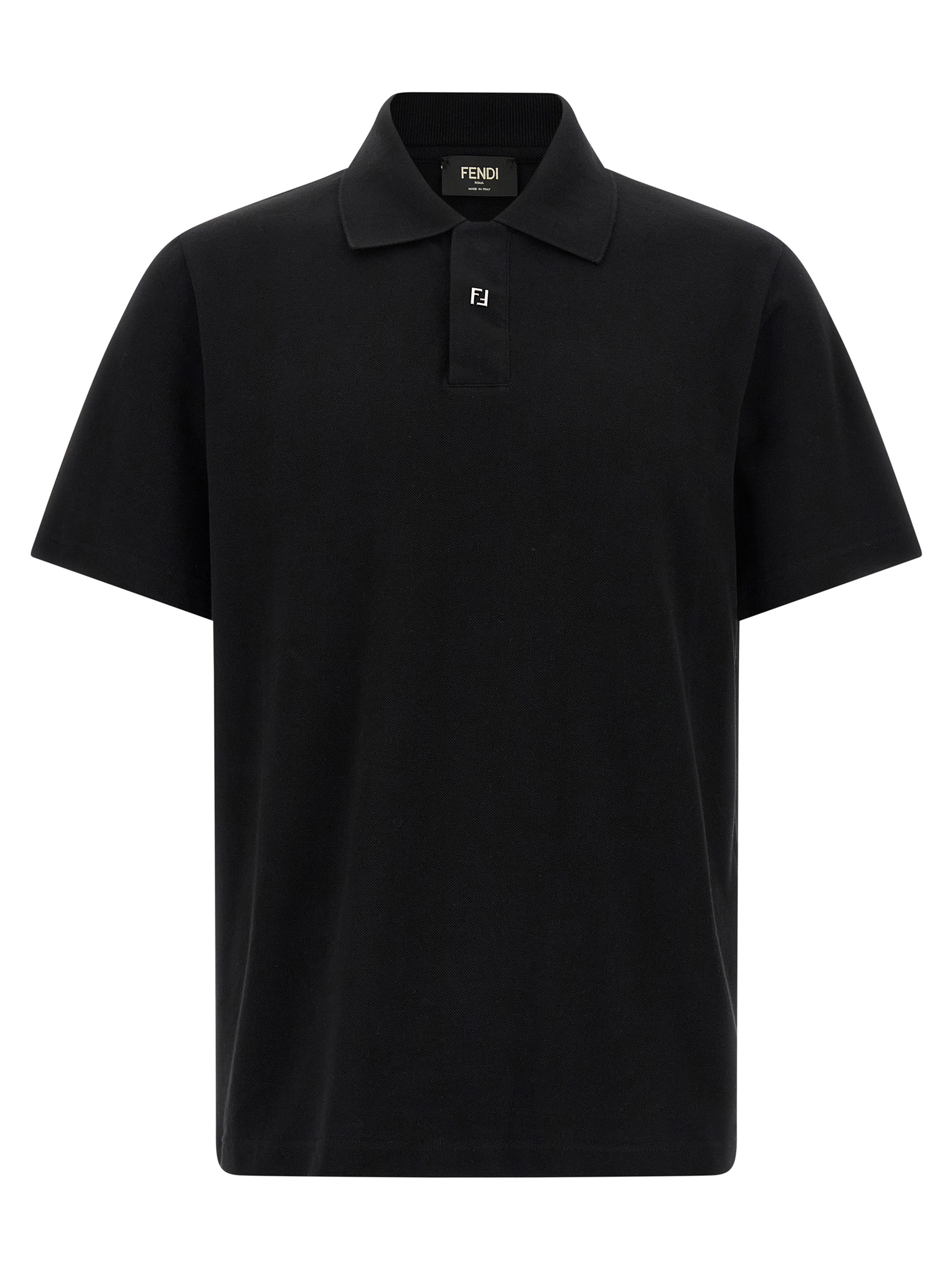 Piqué cotton polo shirt with metal ‘FF’ detail on the front, shirt collar, two snap button closure, short sleeves.