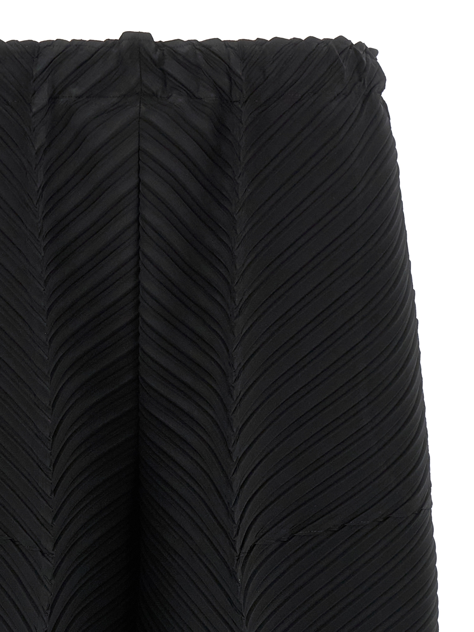 ‘Plaster Pleats Solid’ pleated pants, crop model, wide leg, stretched pleat, elastic waistband, pockets, asymmetrical leg bottom.