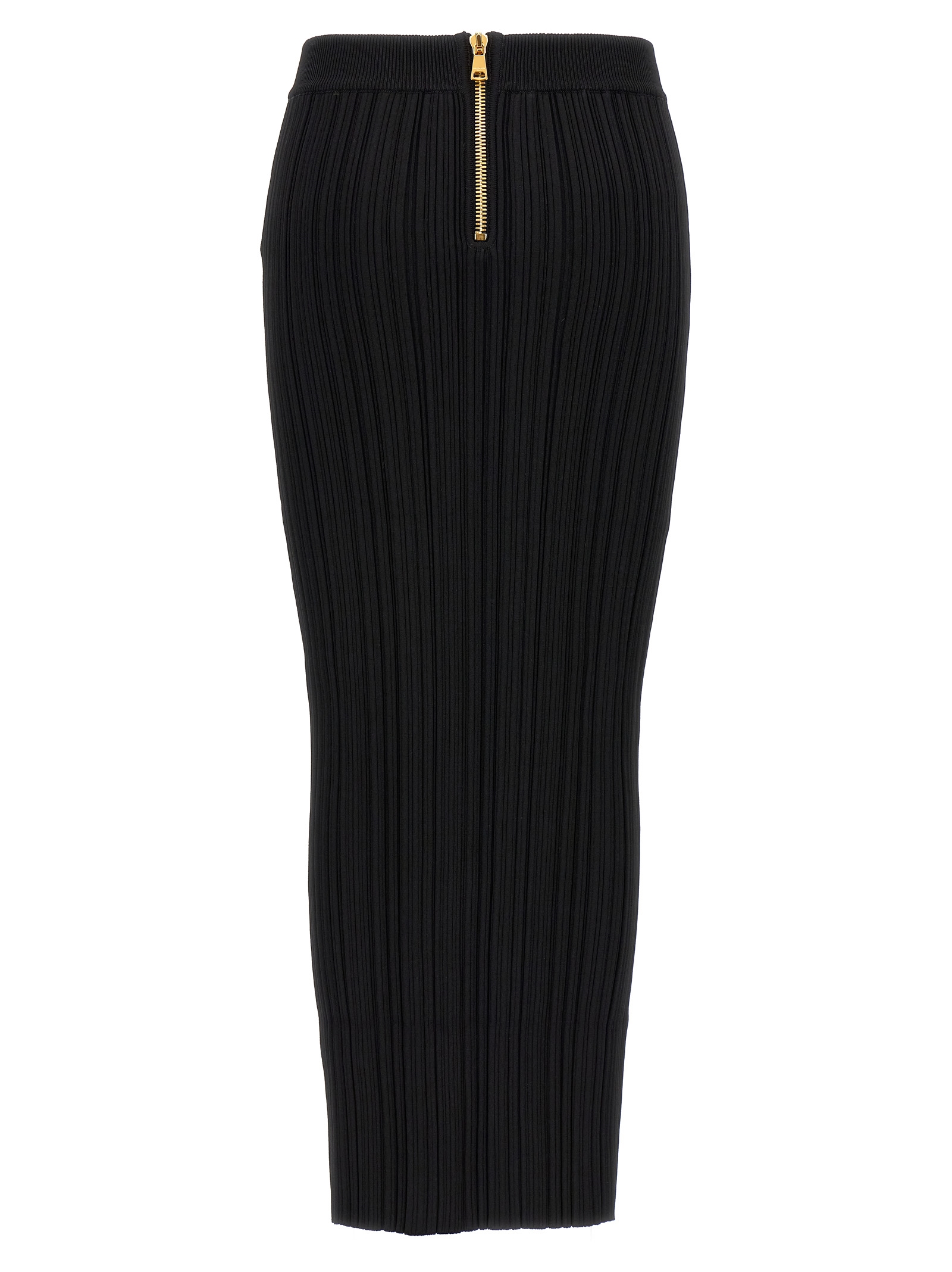 Midi skirt in pleated viscose blend, back zip closure, elastic waistband.