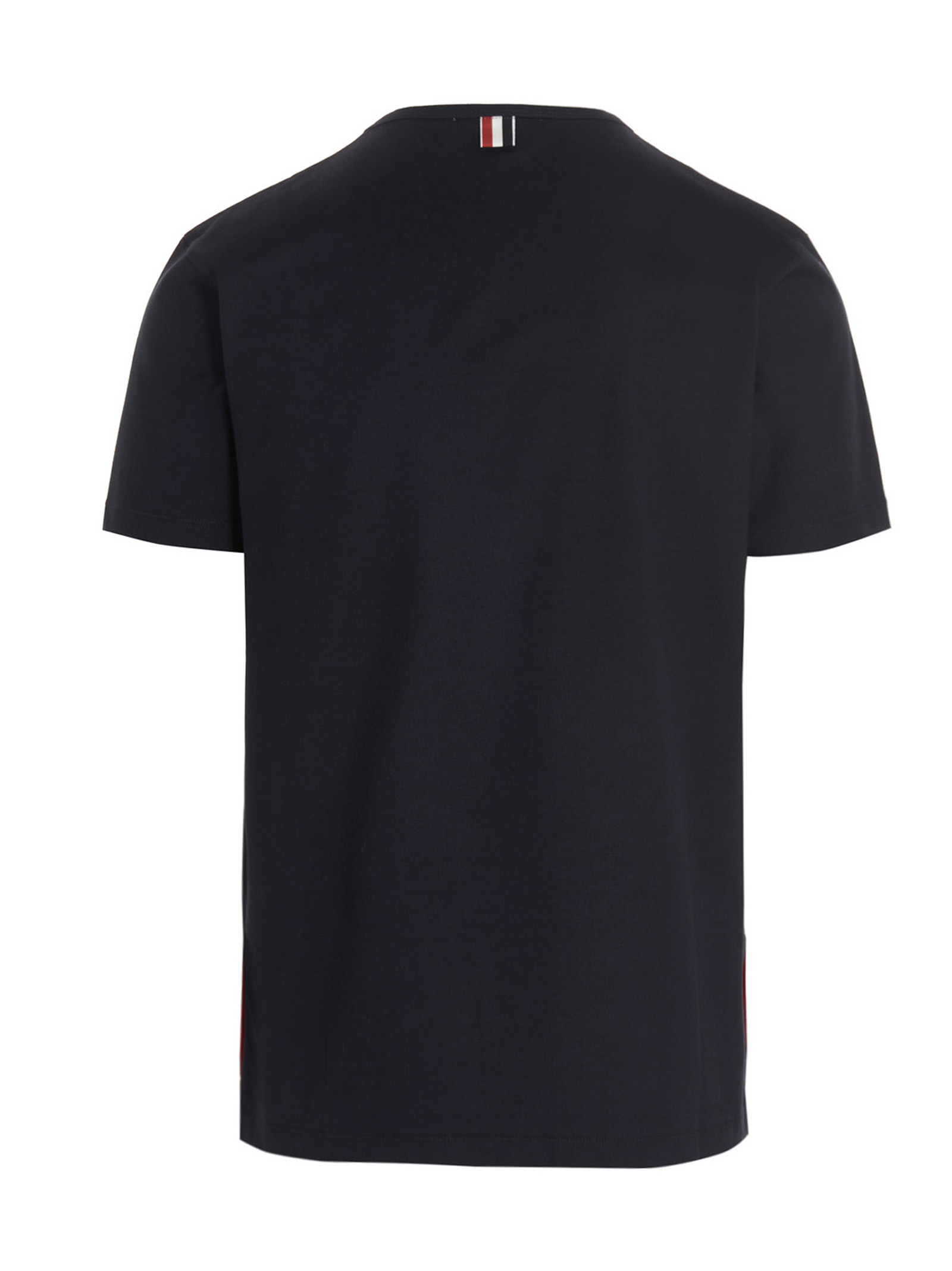 Thom Browne jersey crew neck t-shirt with short sleeves, chest pocket and contrast band details.