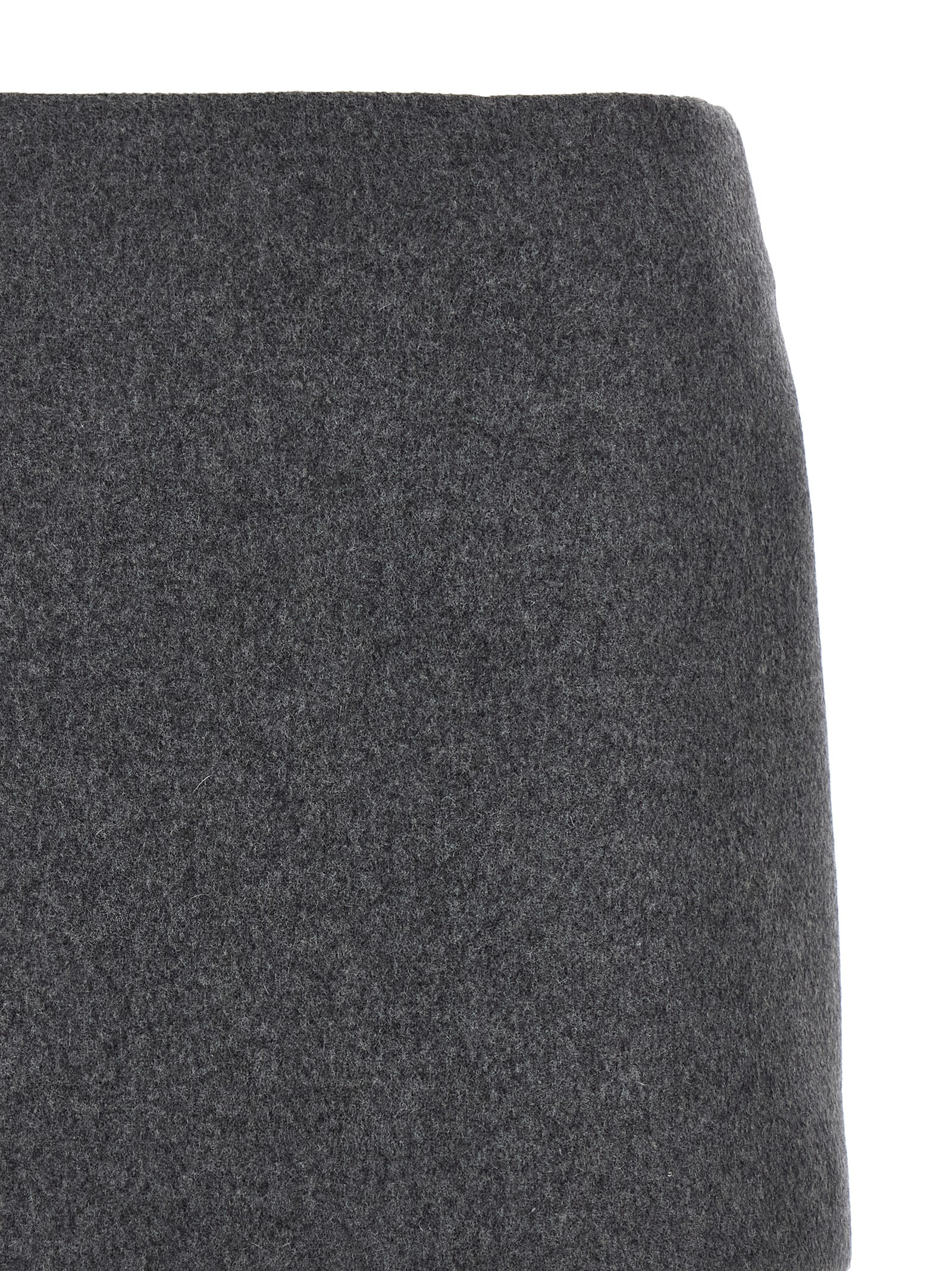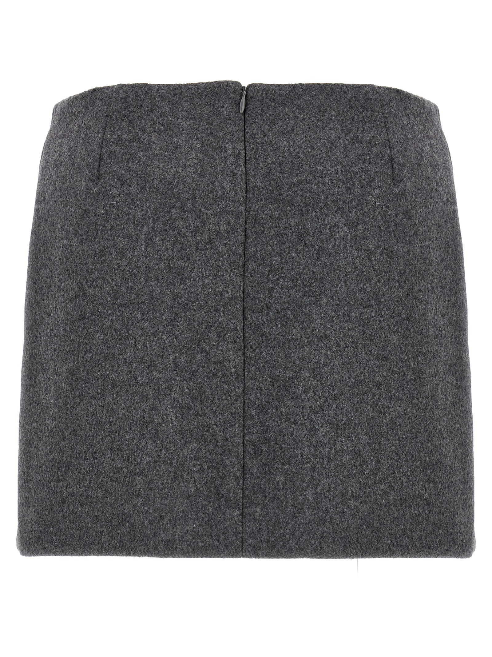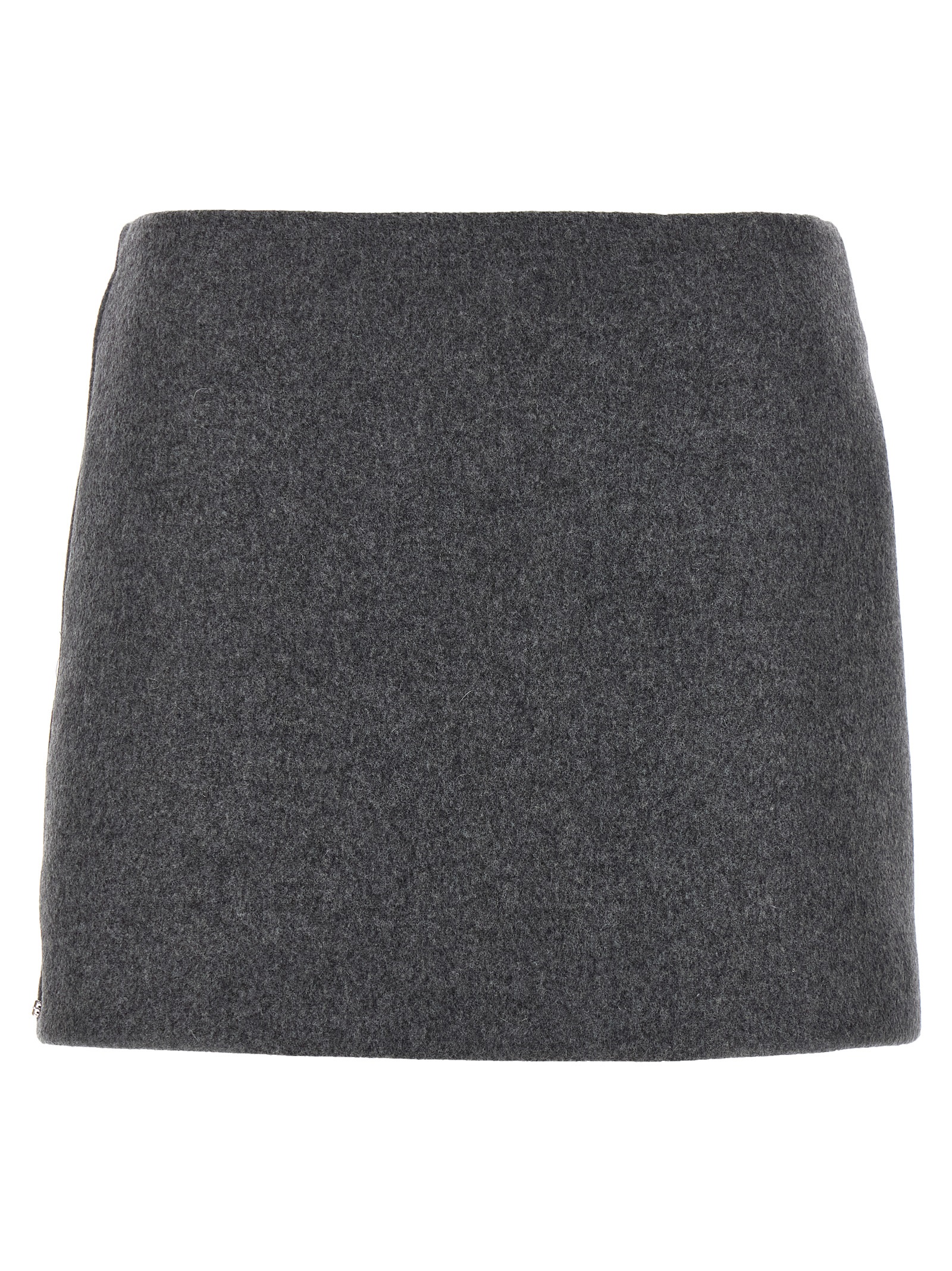 ‘Poggio’ mini skirt in wool mélange, front metal logo, back zip closure, lining.