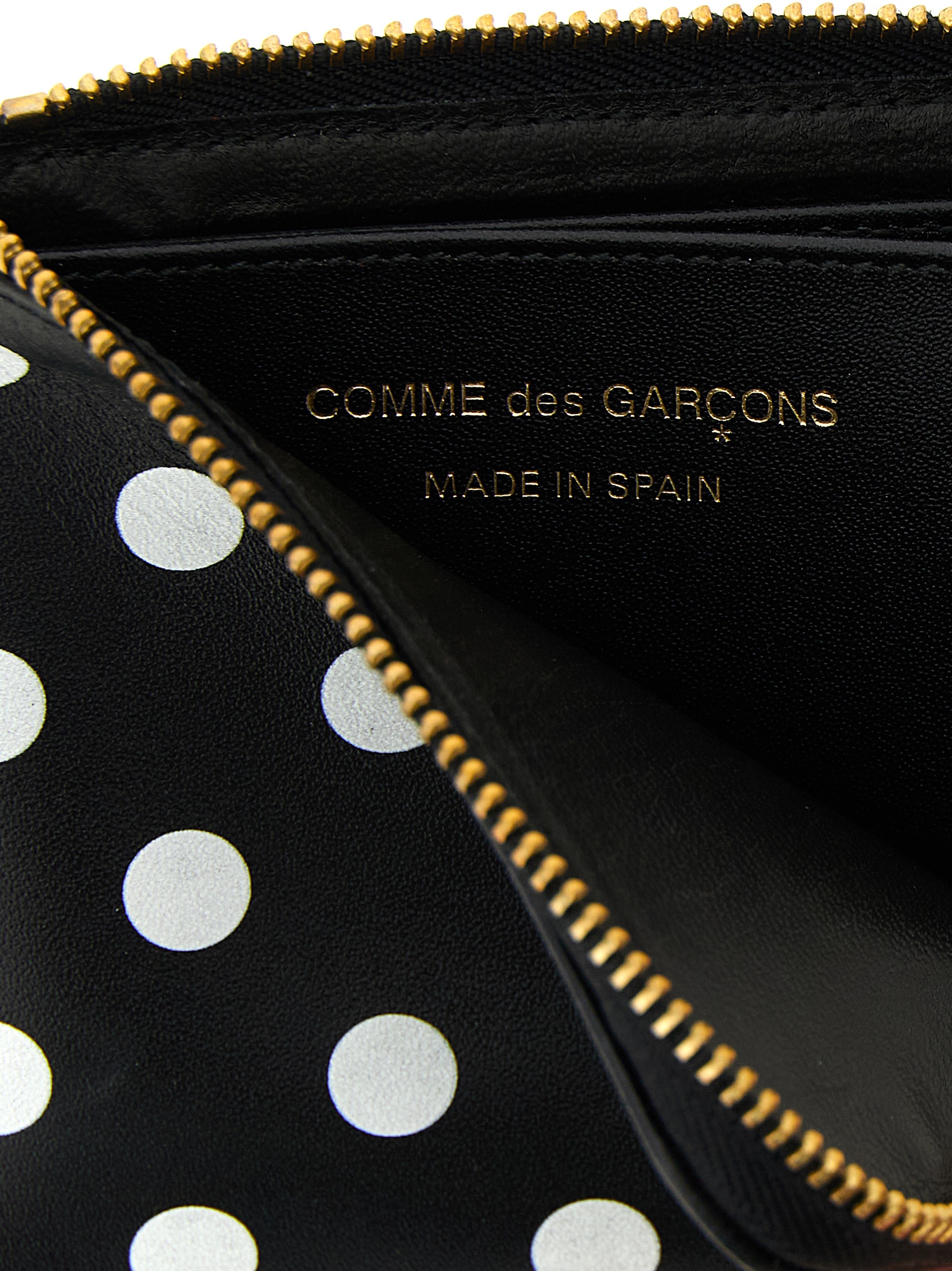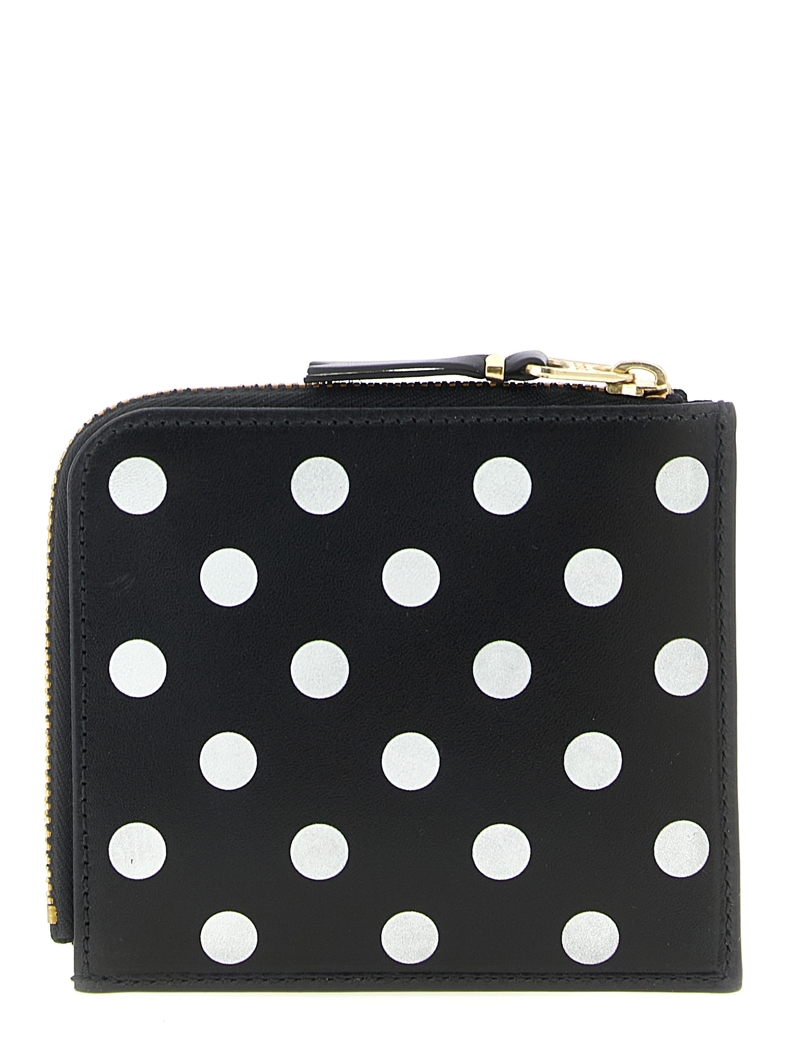 Polka Dots Printed wallet in polka dot print leather, zip closure.