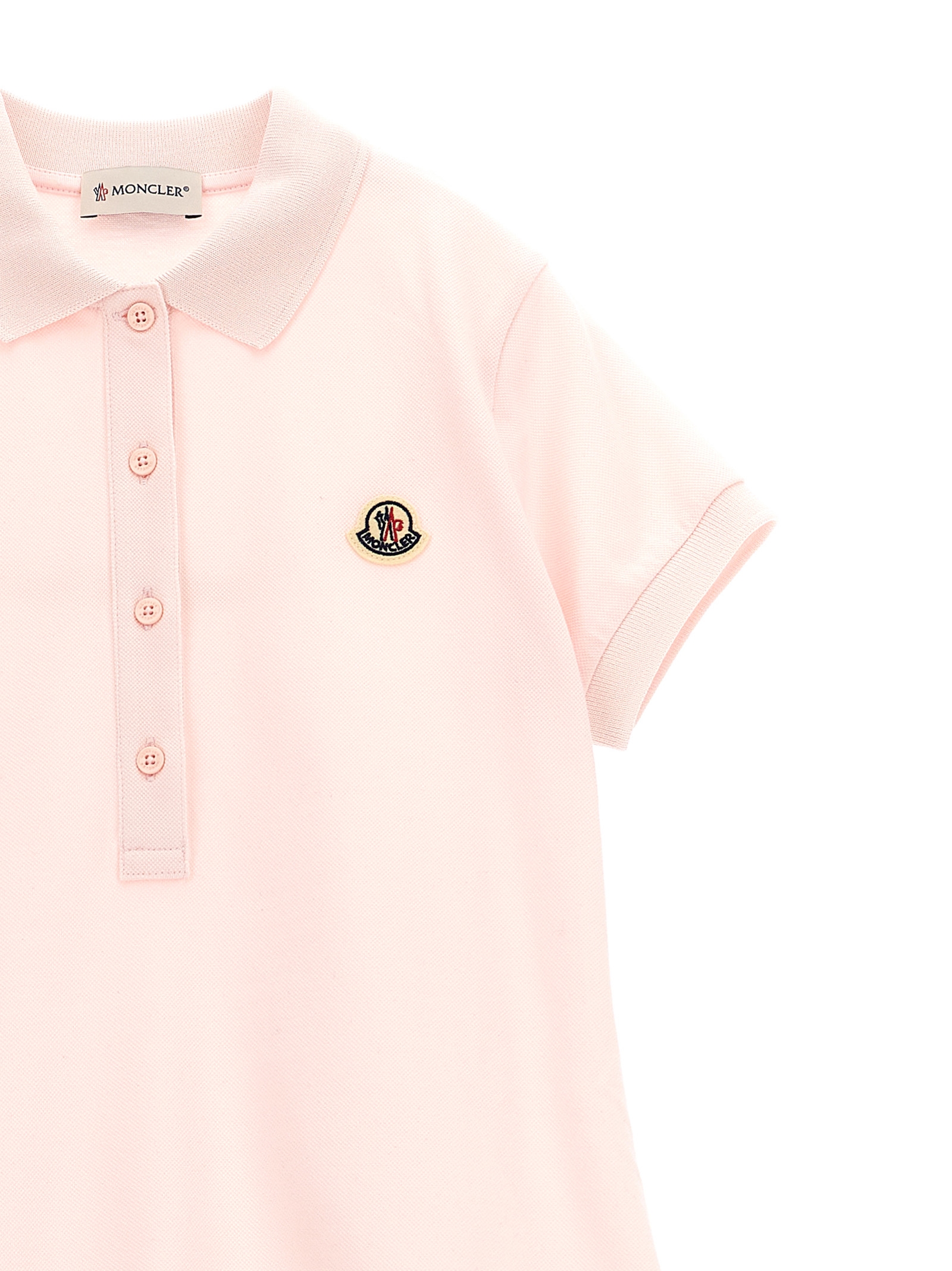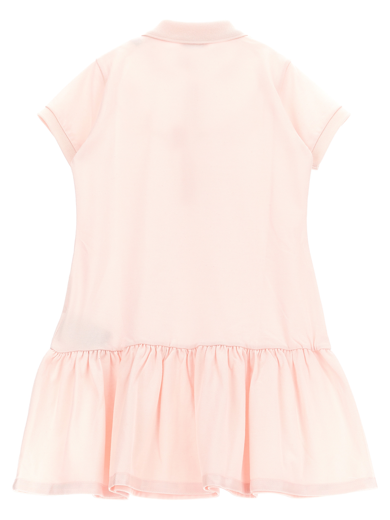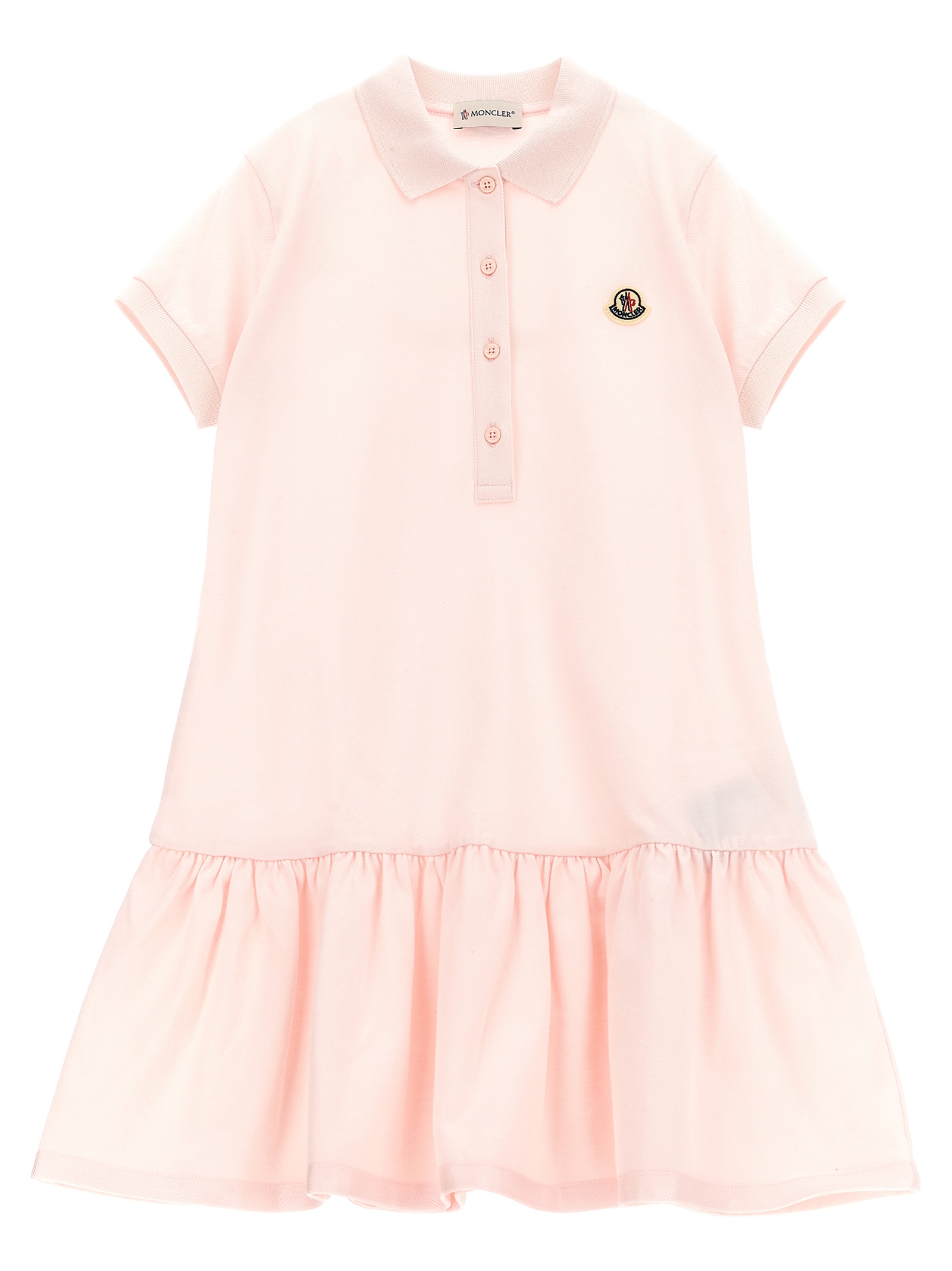 Stretch piquet cotton polo dress with collar and buttons, front logo patch, short sleeves with cuffs, flounce on the hem.