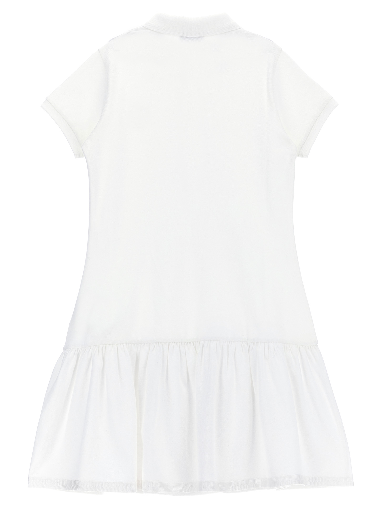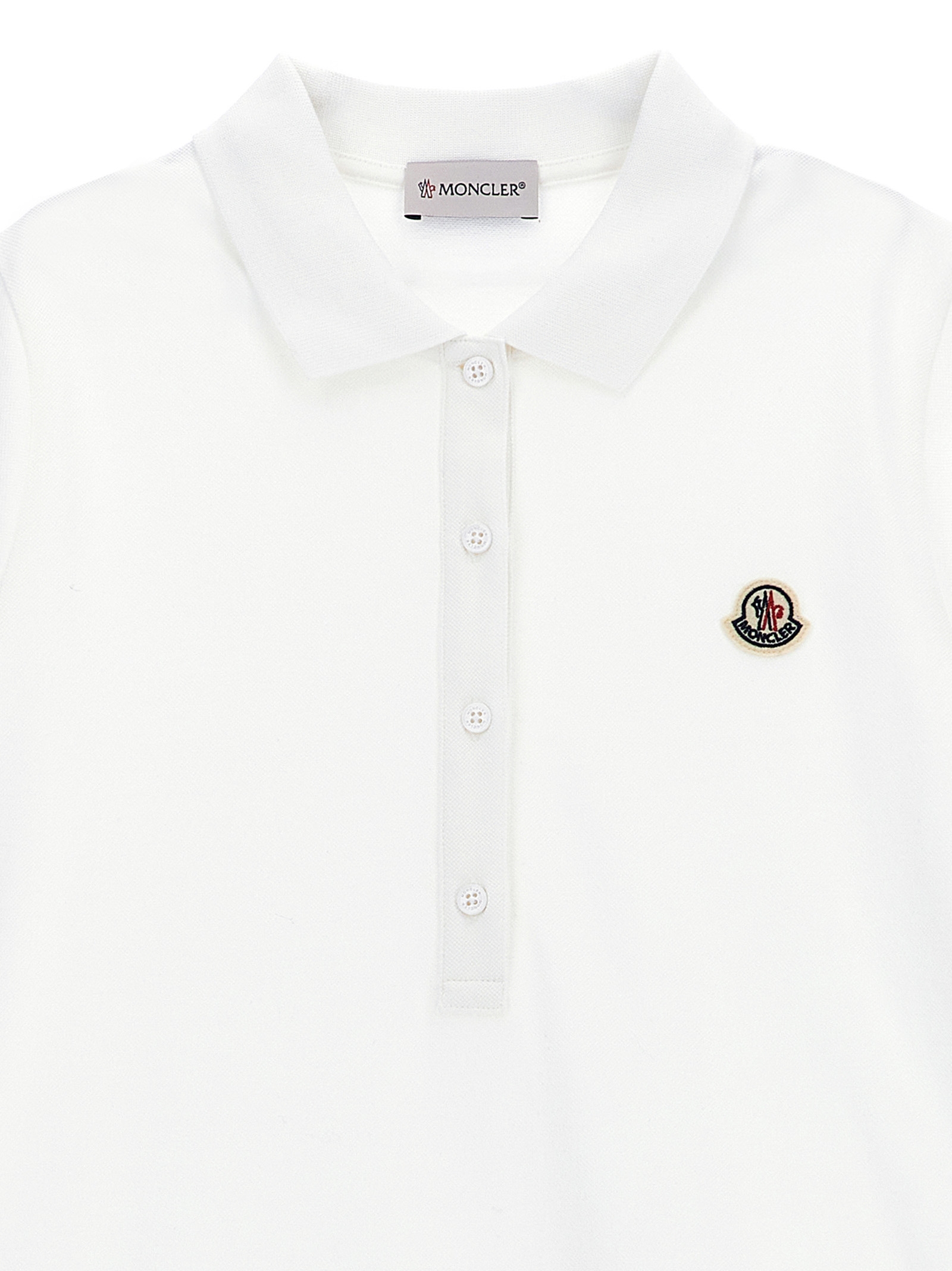 Stretch piqué cotton polo dress with collar and buttons, front felt logo patch, short sleeves, tone-on-tone grosgrain ribbon on the hem.