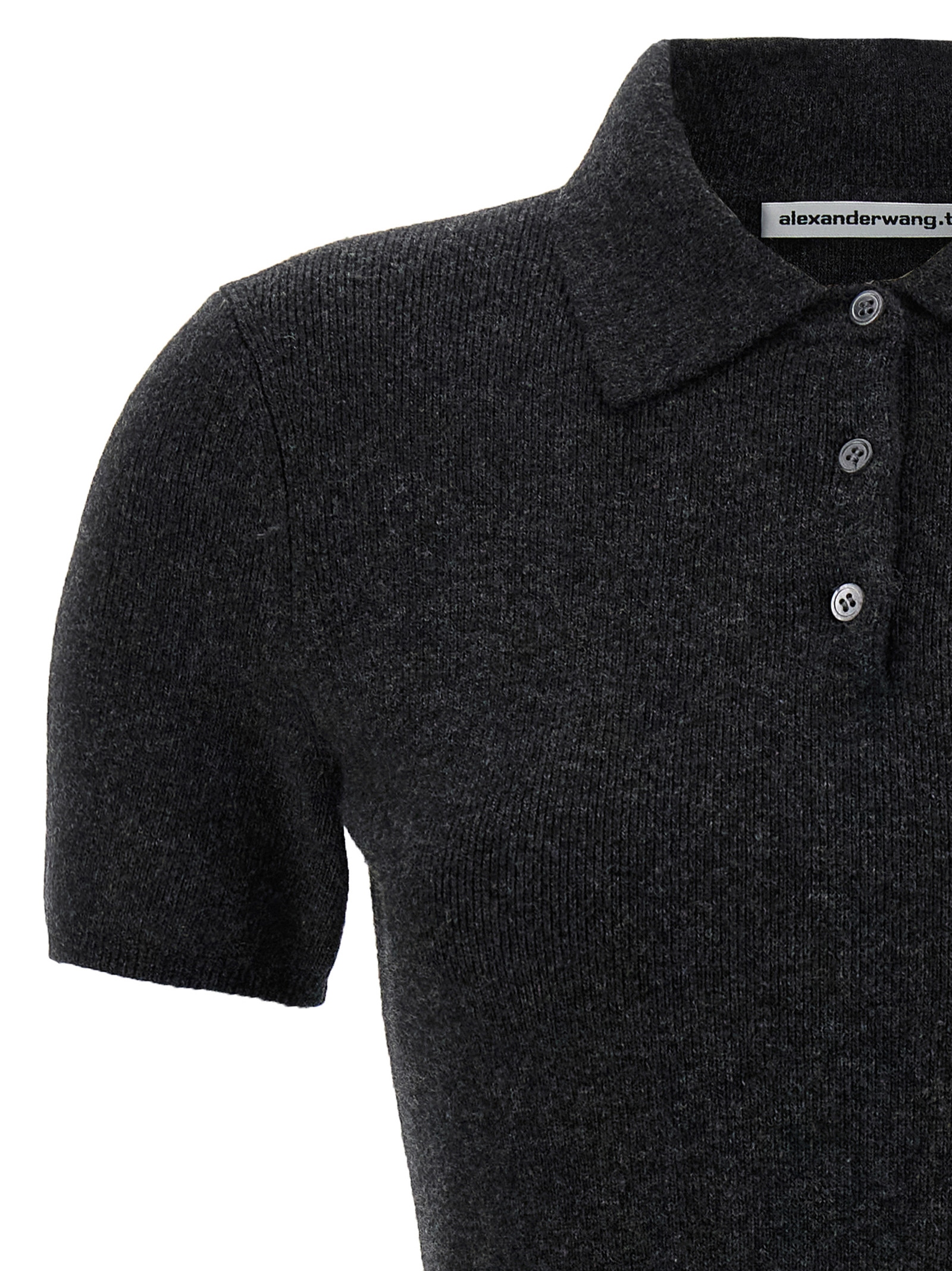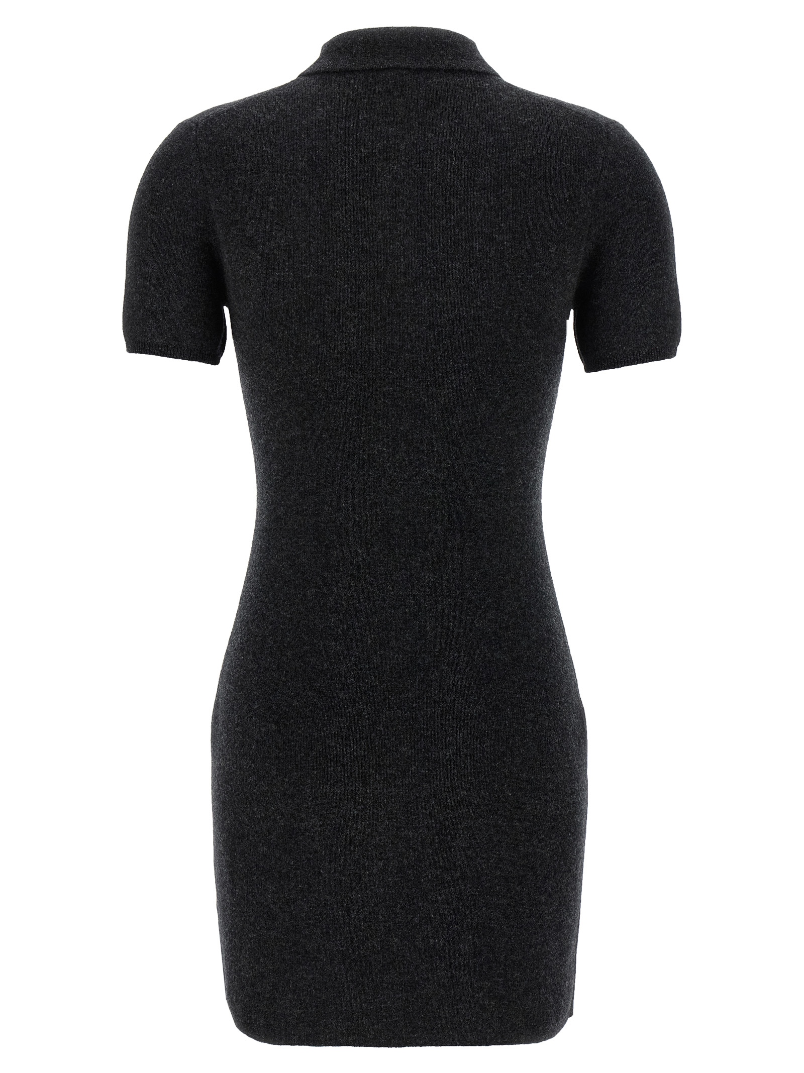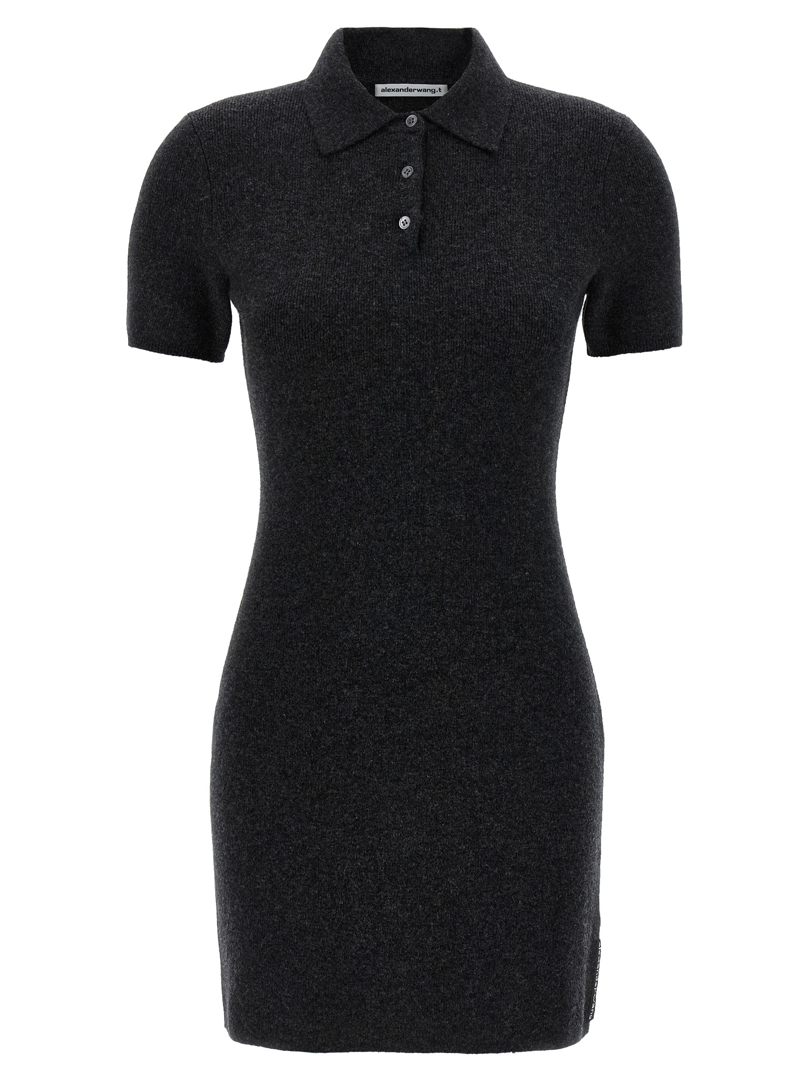 Wool mélange polo shirt mini dress with collar and buttons, front logo patch and short sleeves.