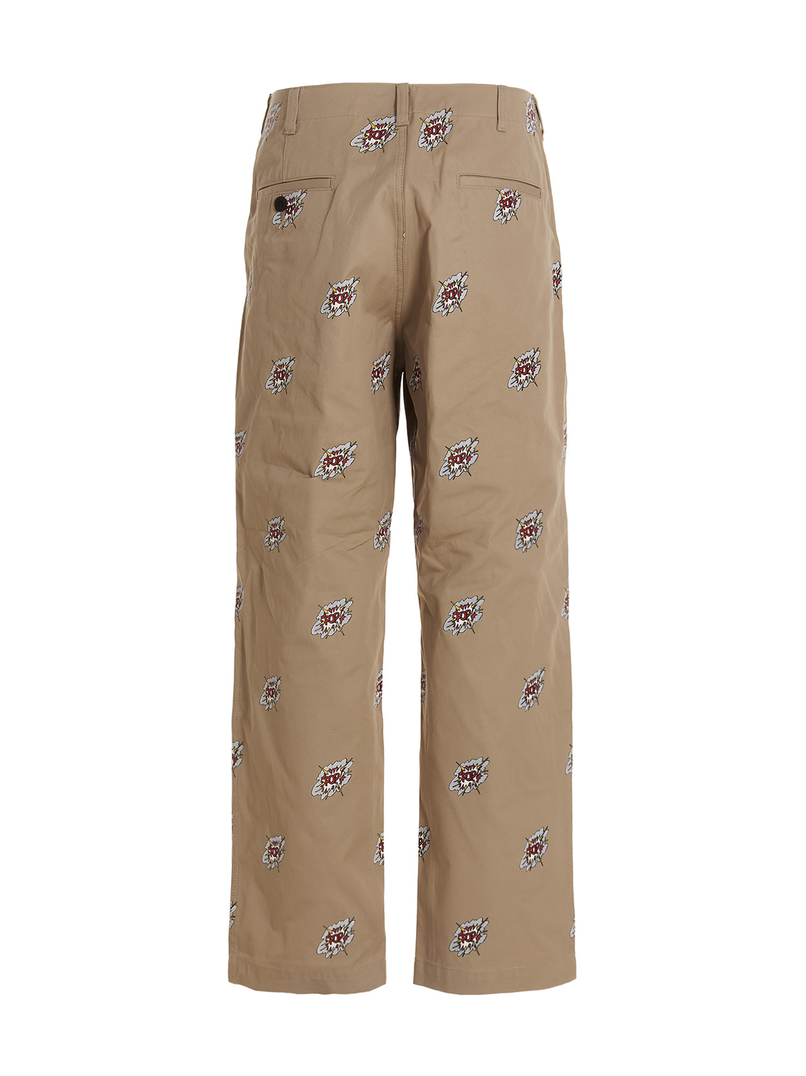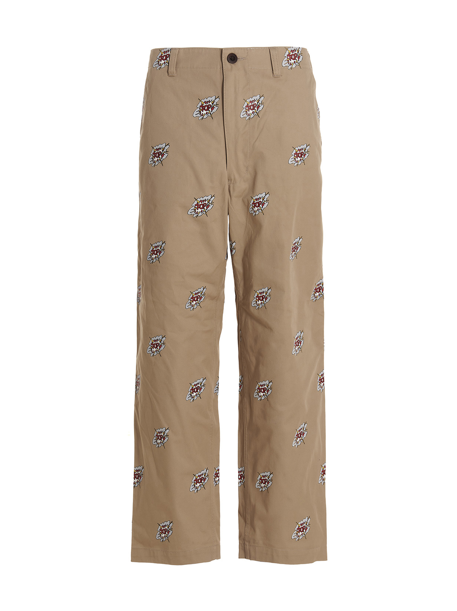 ‘Pop Roy Lichtenstein’ cotton chinos with all-over print, zip and button closure. closure.