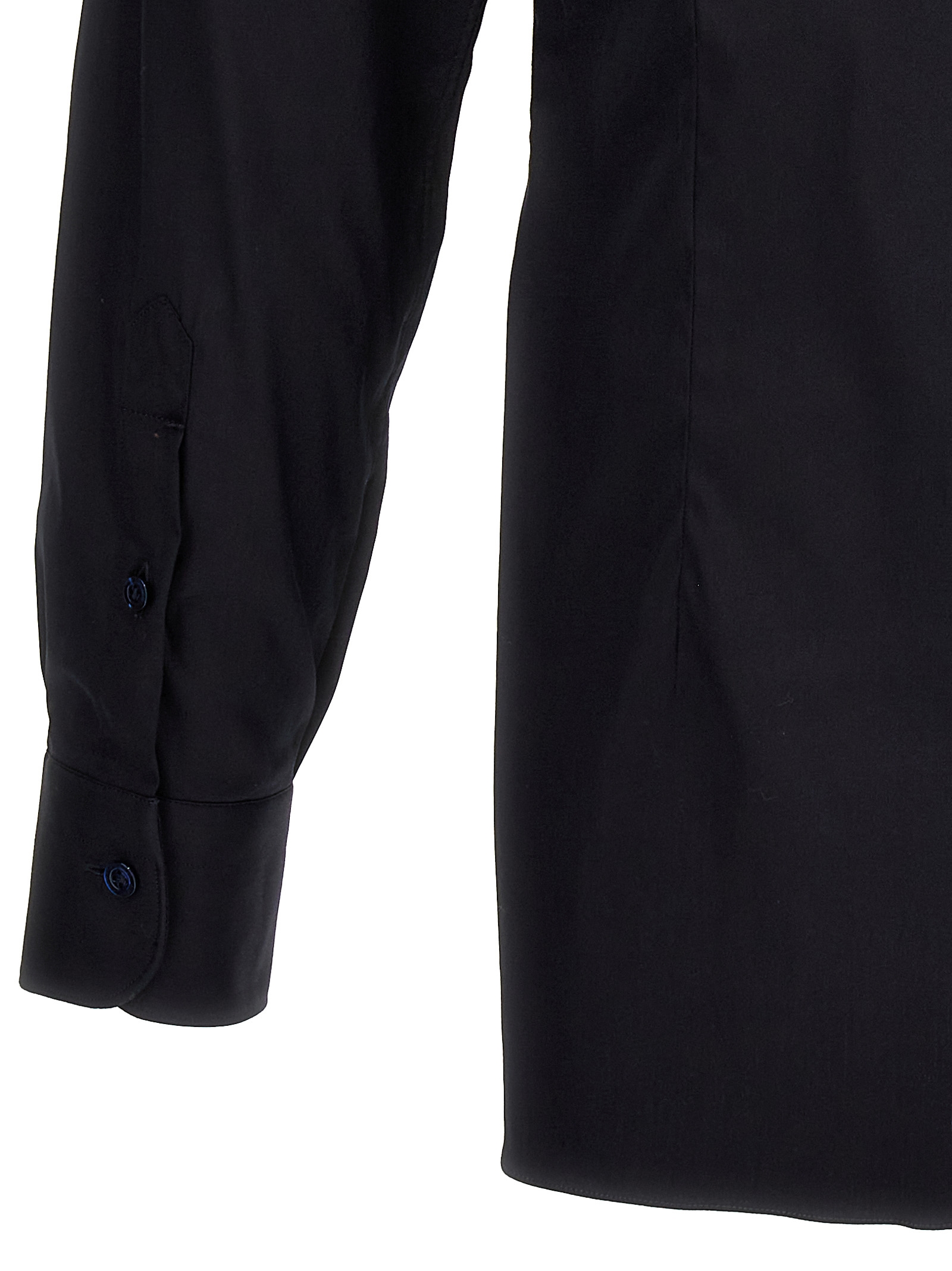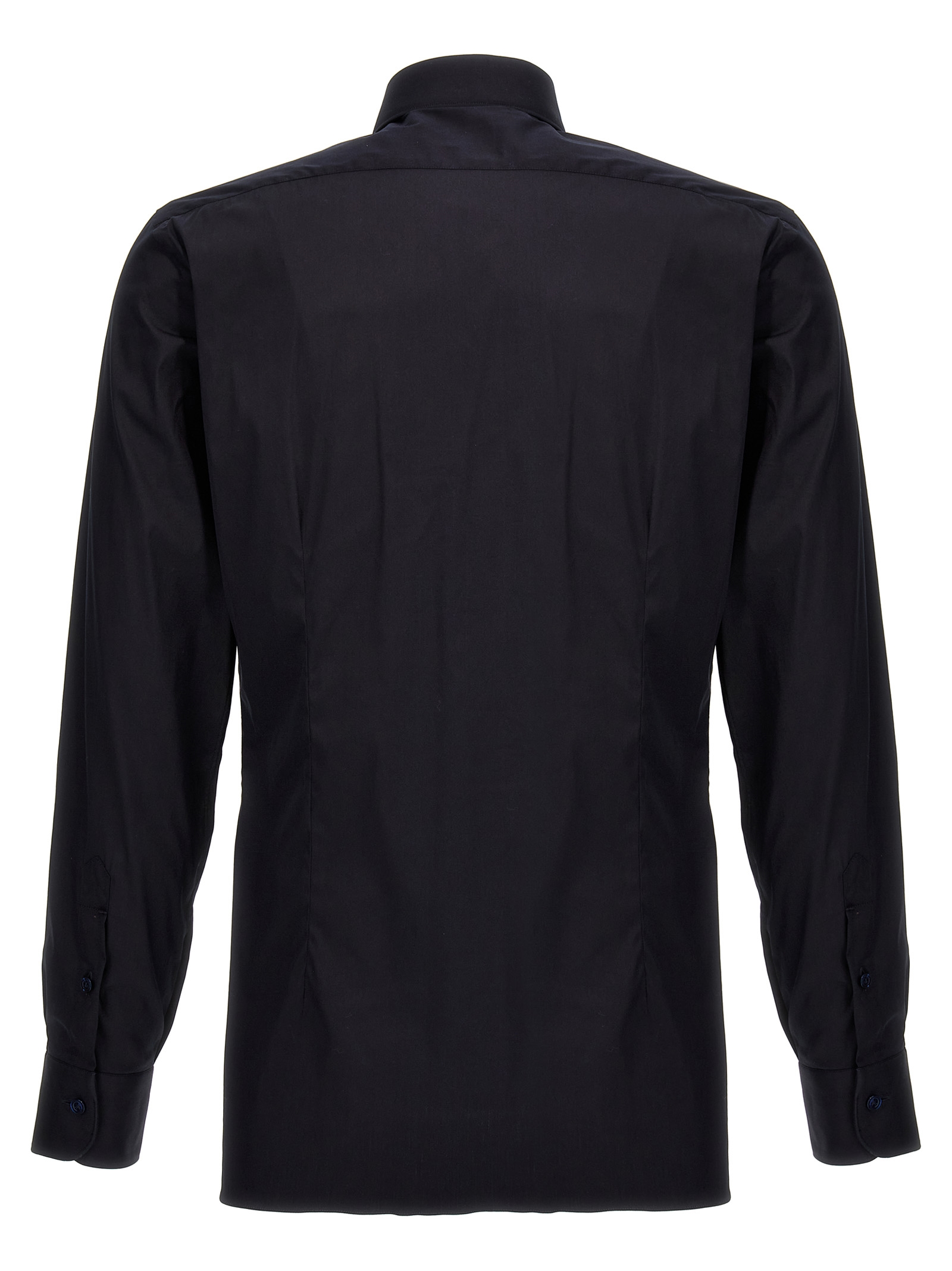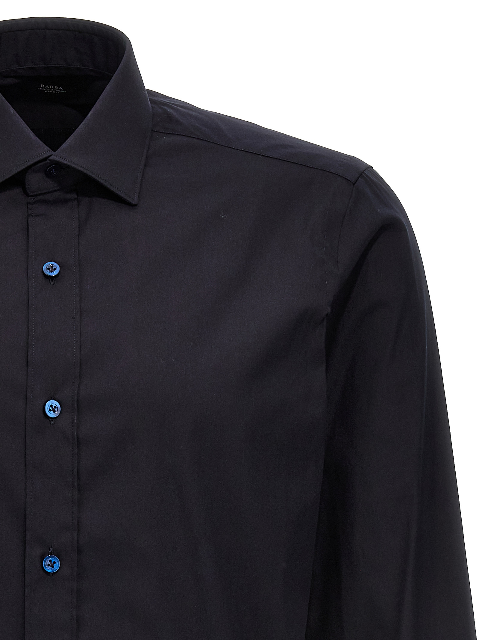 Cotton blend poplin shirt with button closure, long cuffed sleeves.