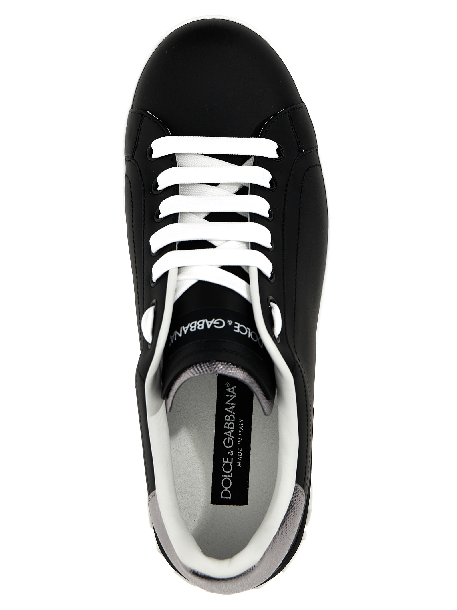 Portofino low sneakers in leather with logo insert, laces, and rubber box sole.