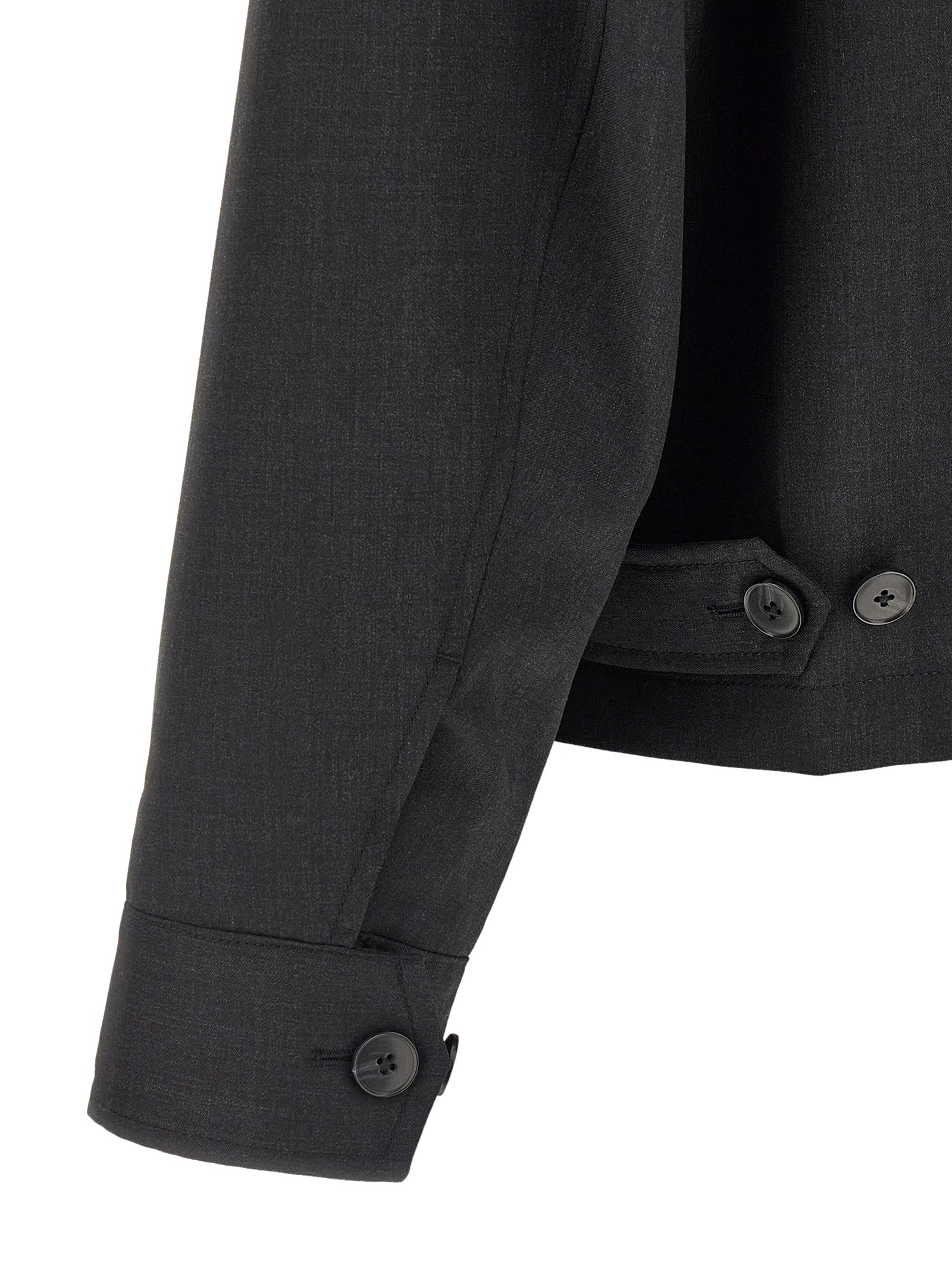 ‘Postal’ lightweight wool jacket with a thin two-tone weave, shirt collar, front zip closure, pockets, long sleeves with adjustable cuffs, adjustable straps on the hem, half lining.