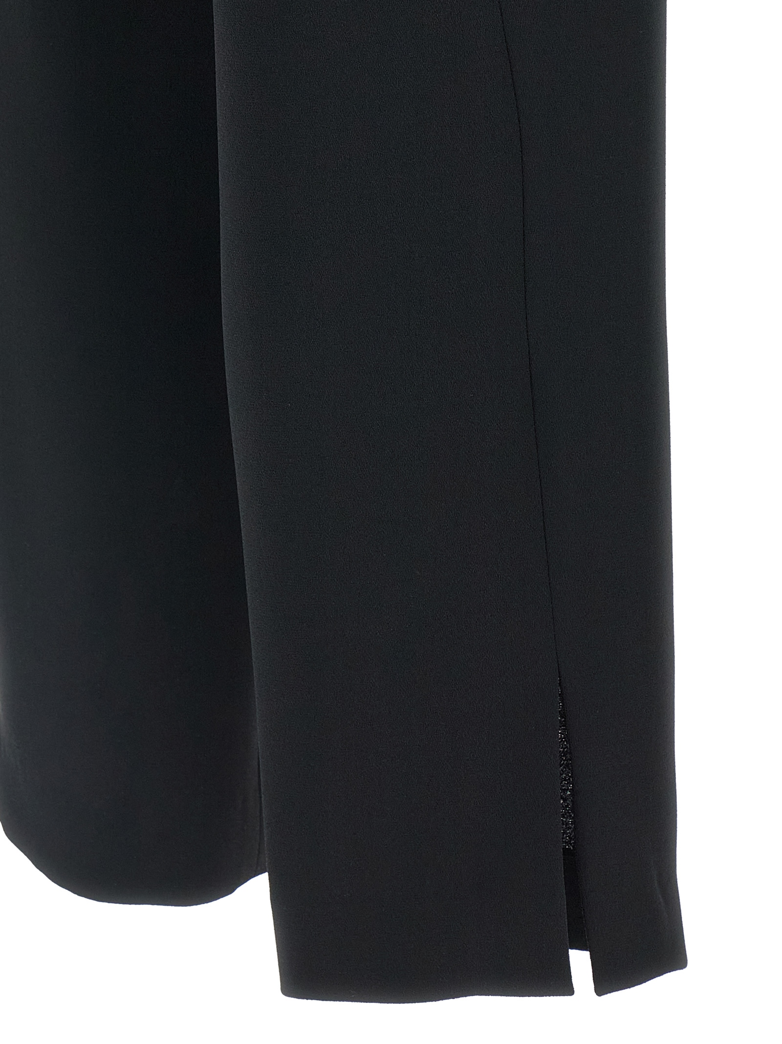 ‘Posy’ crêpe pants, straight leg, high waist, hook and front button zip closure, patch pockets, slit at the bottom of the leg.