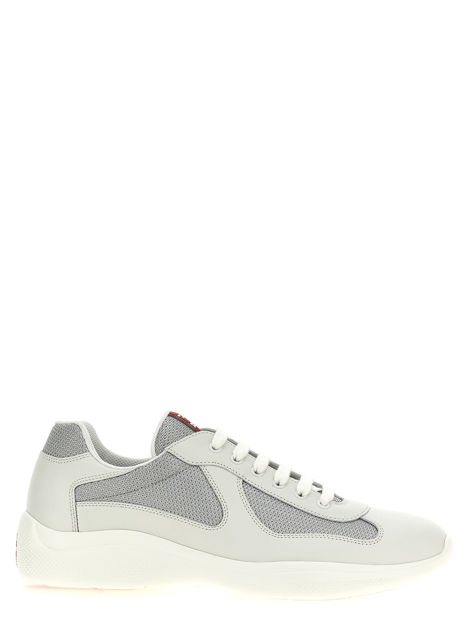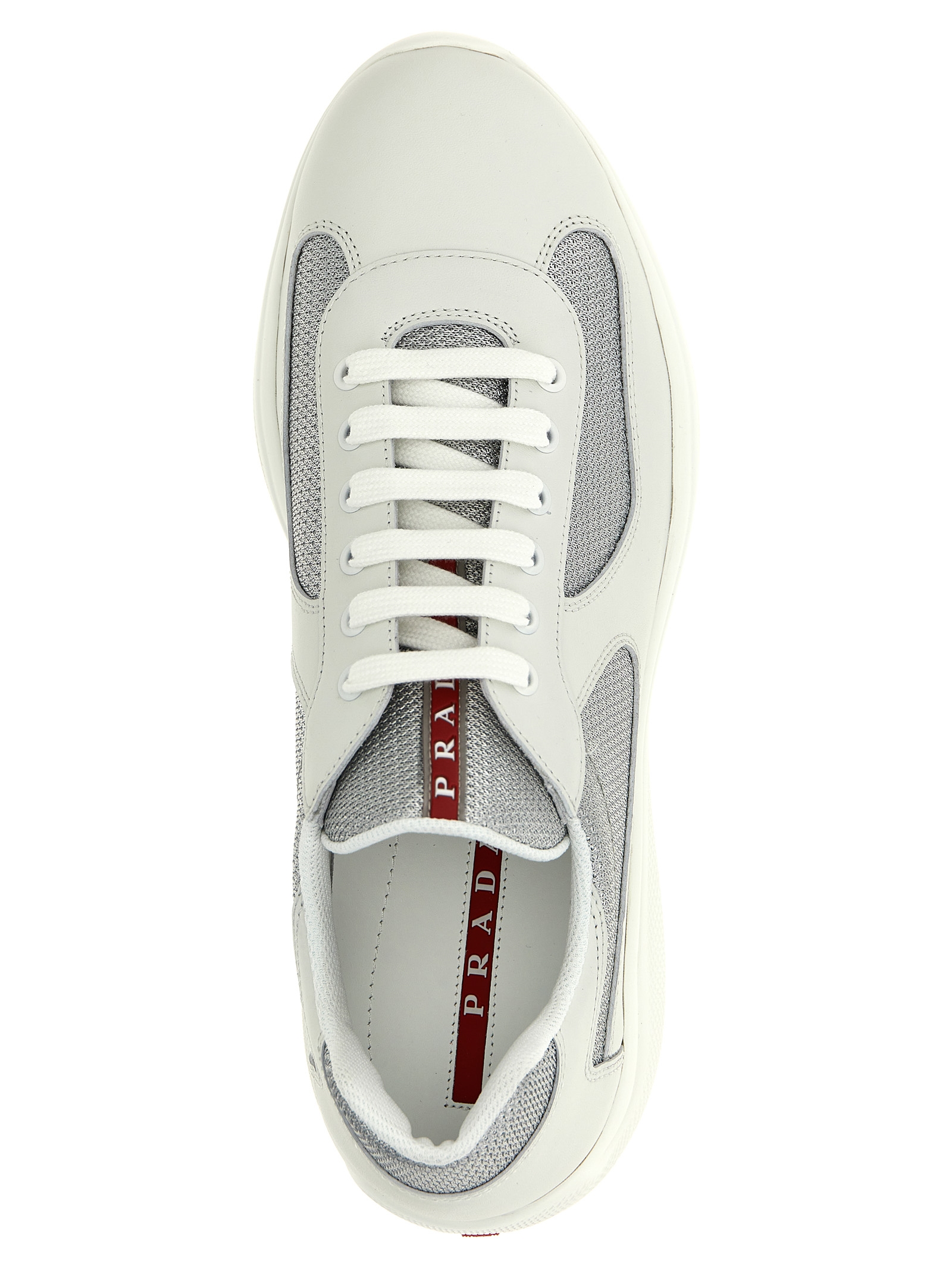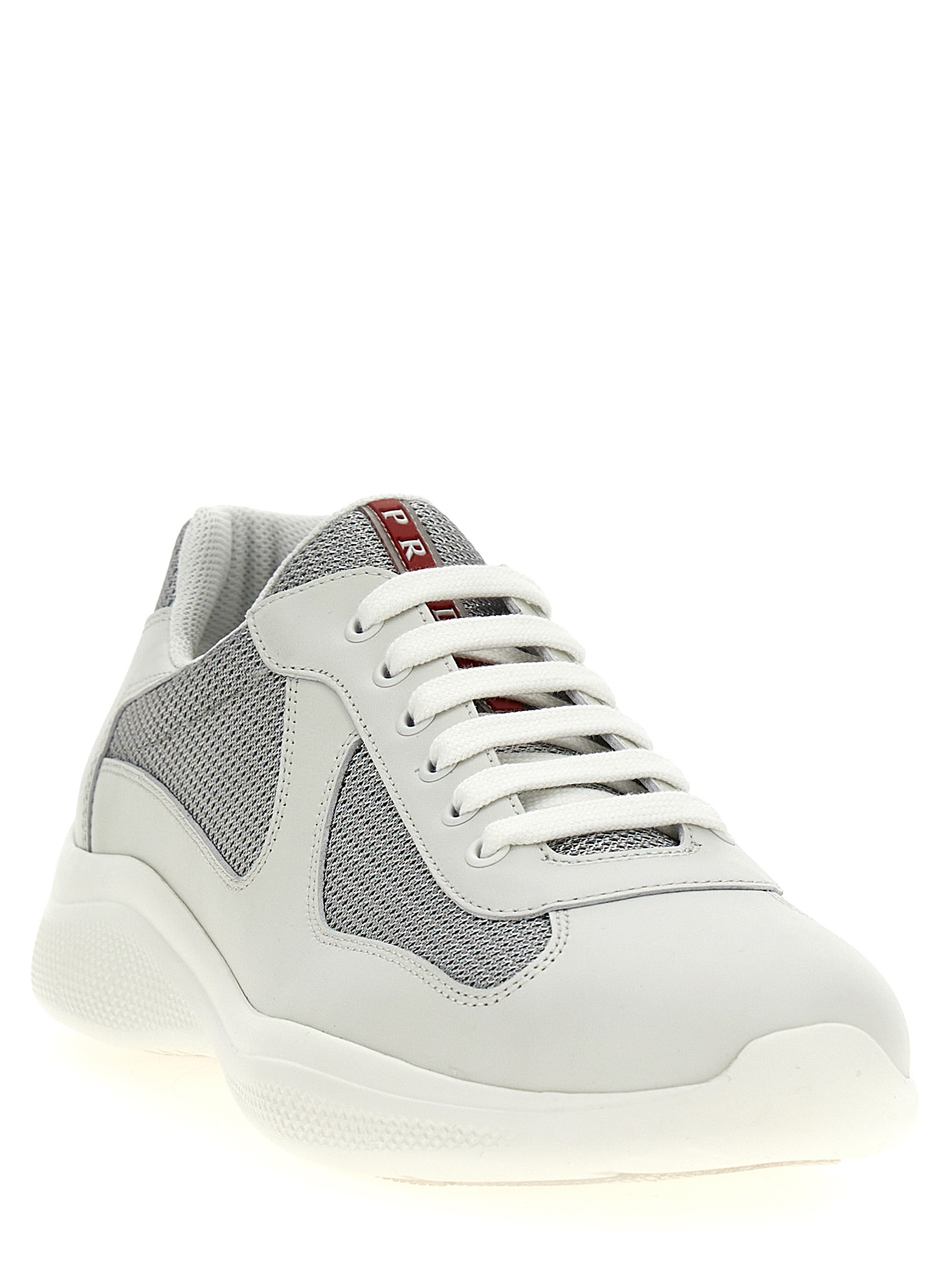 ‘Prada America’s Cup’ sneakers in leather and bike fabric, low top model with laces, rubber sole, logo.