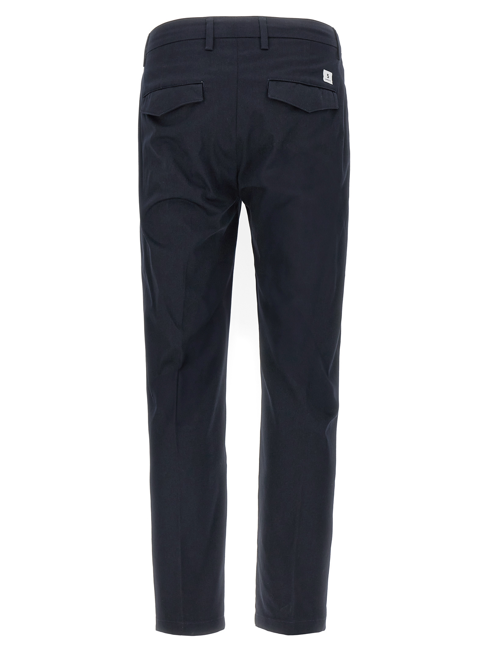 ‘Prince’ pants in stretch cotton, crop model, stretched pleat, front zip and button closure, pockets, back logo patch.