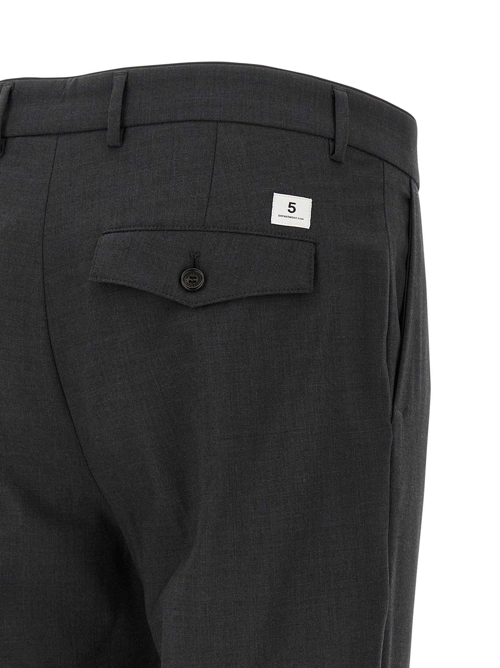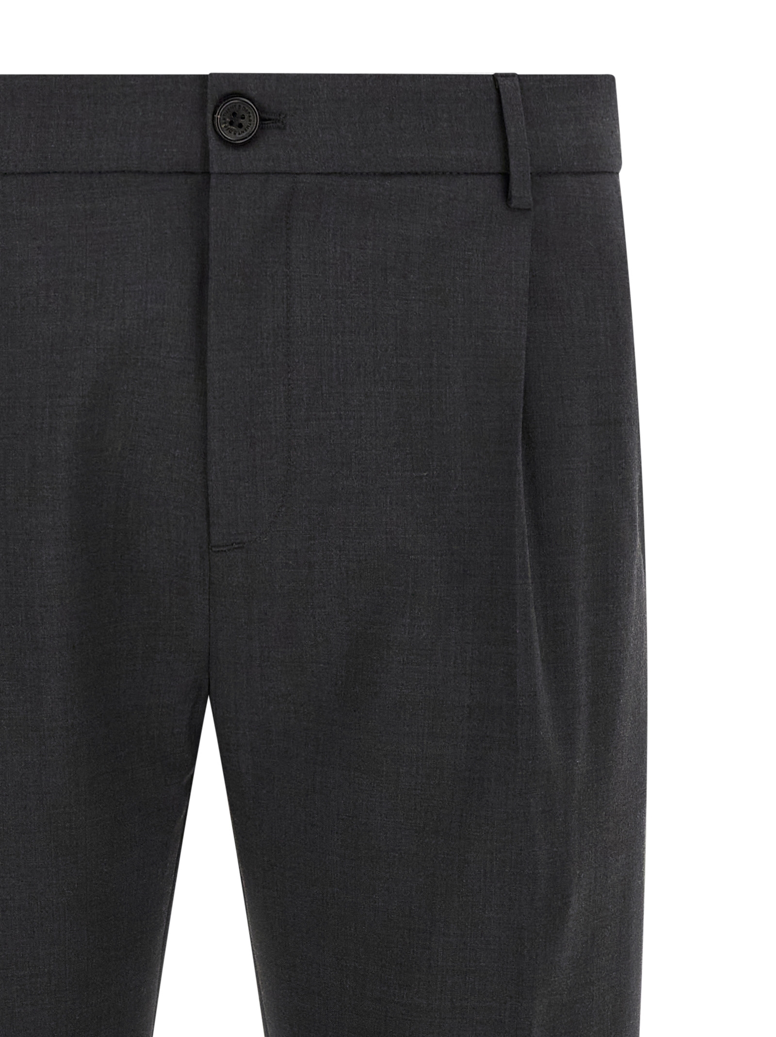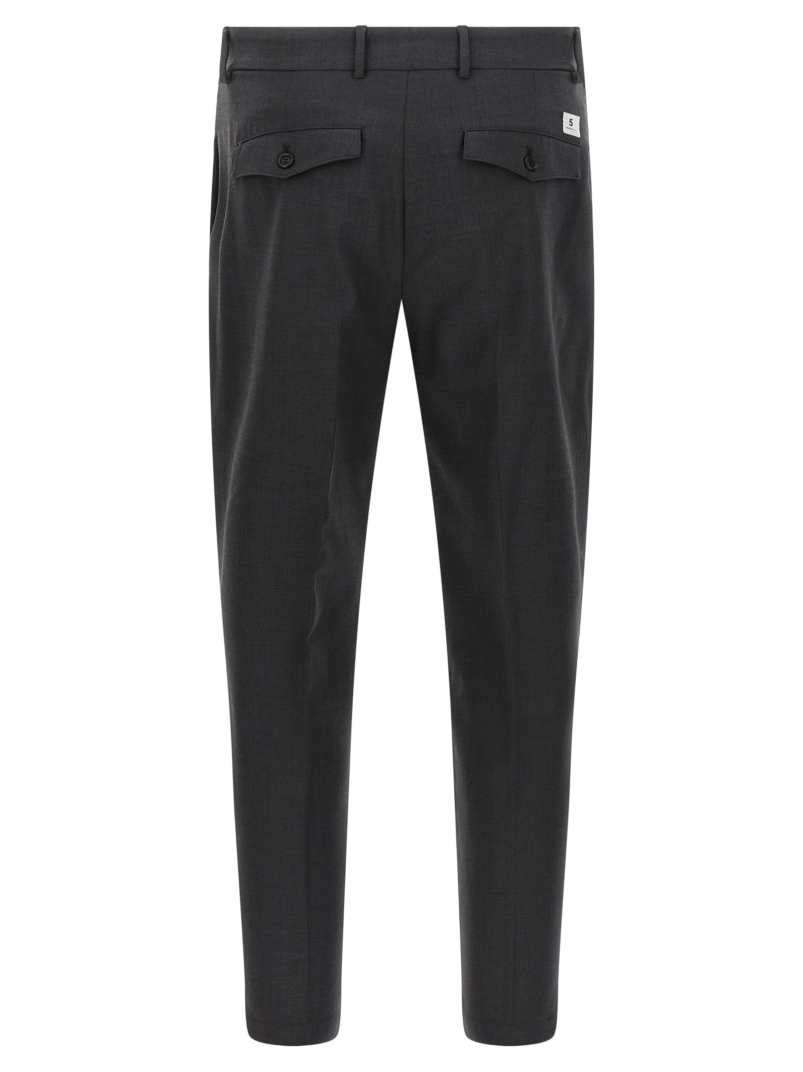 ‘Prince’ wool blend pants, crop model, pins, ironed pleat, front zip and button closure, pockets, back logo patch.
