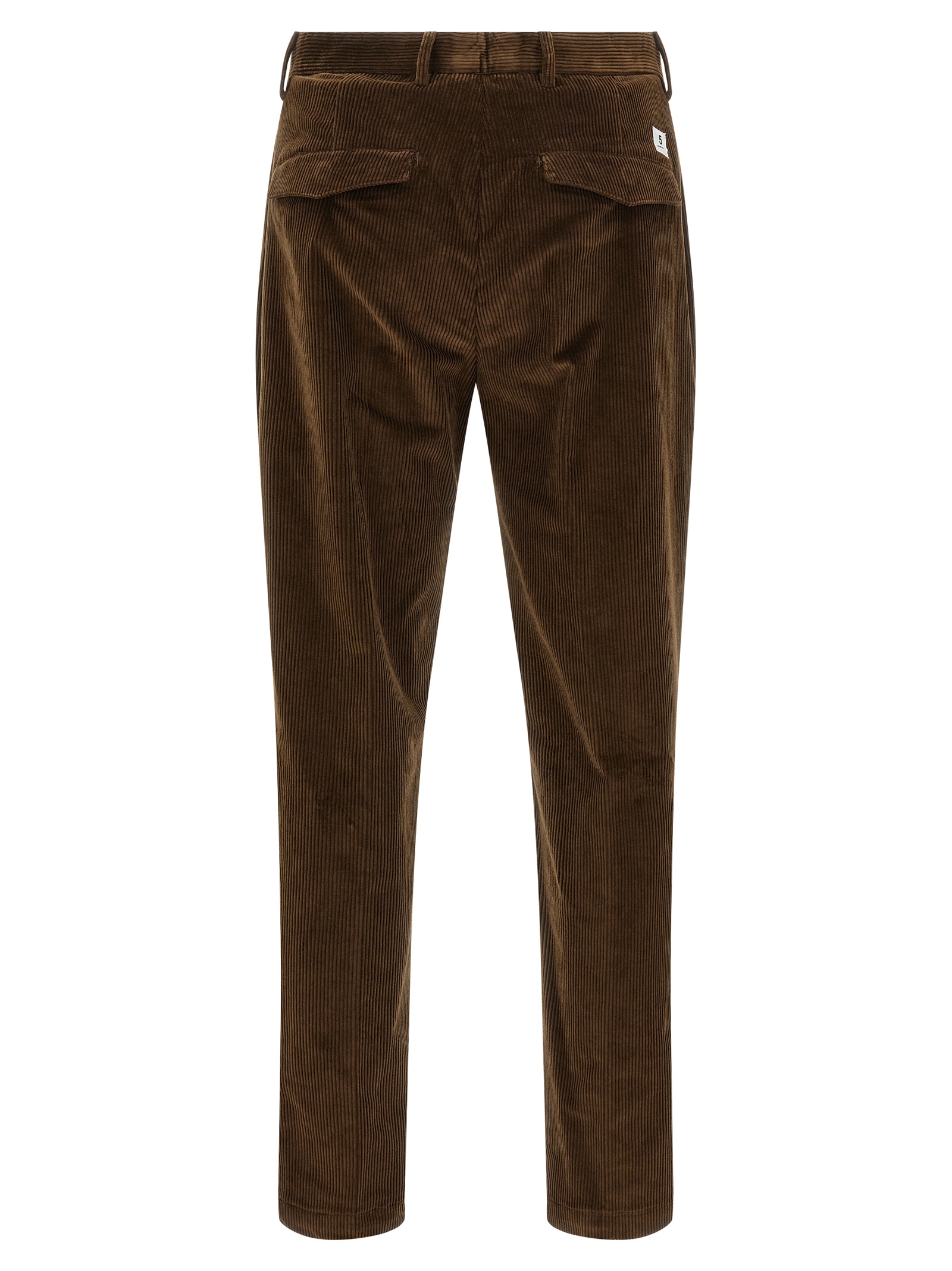 ‘Prince’ corduroy pants, crop model, stretched pleat, front zip and button closure, pockets, back logo patch.