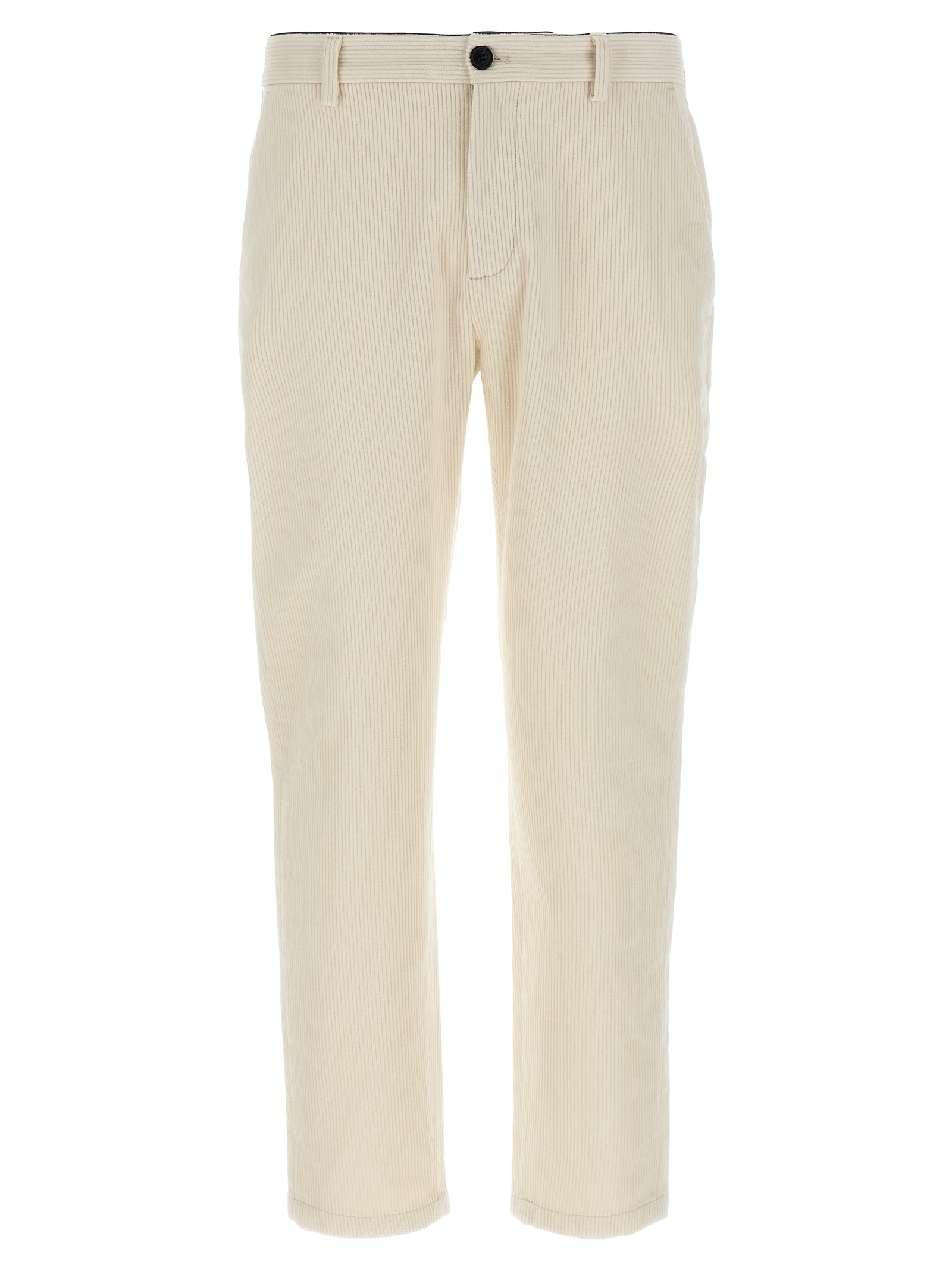 ‘Prince’ corduroy trousers, slightly elasticized, chino, button and zip closure, pockets.