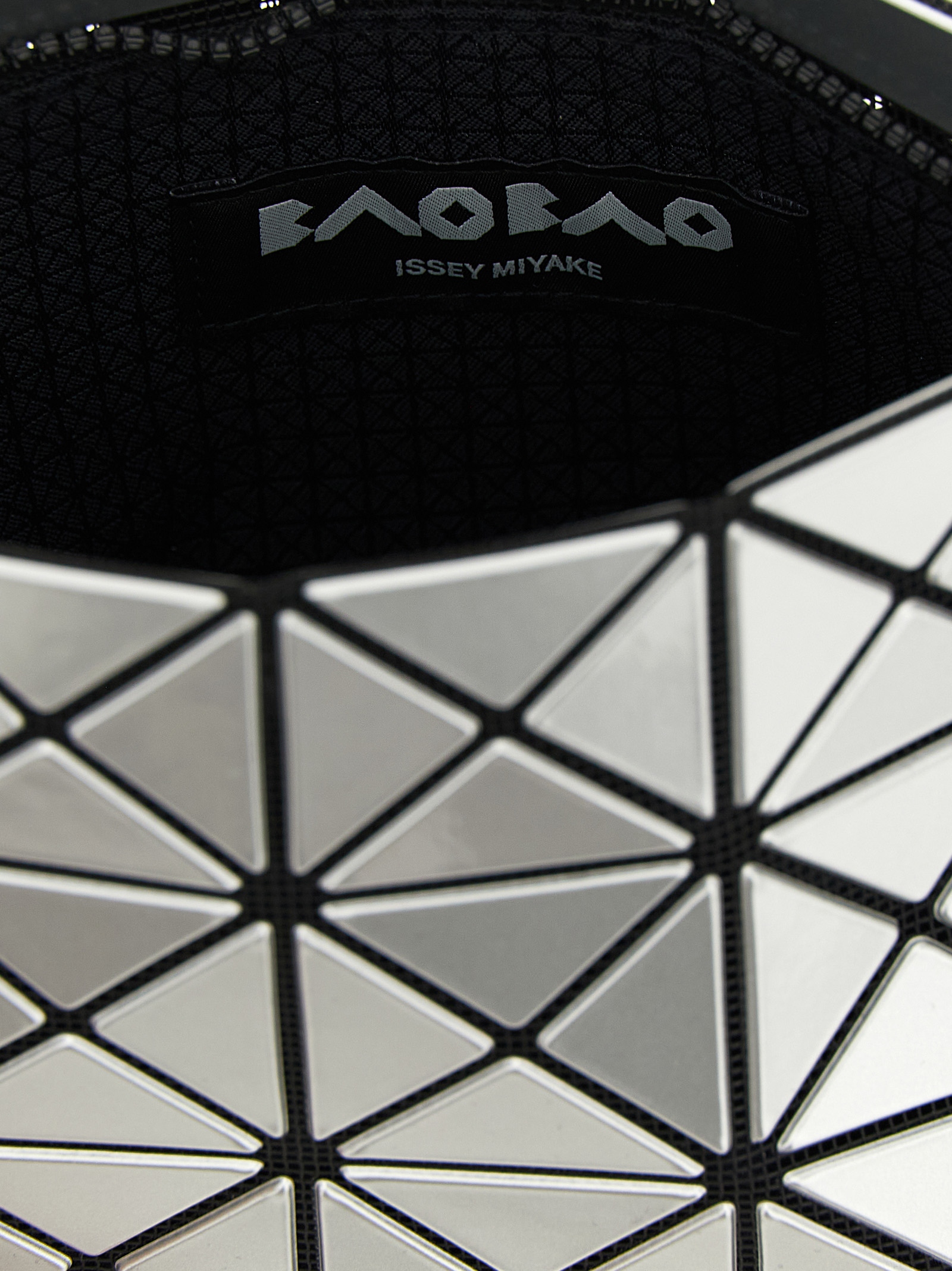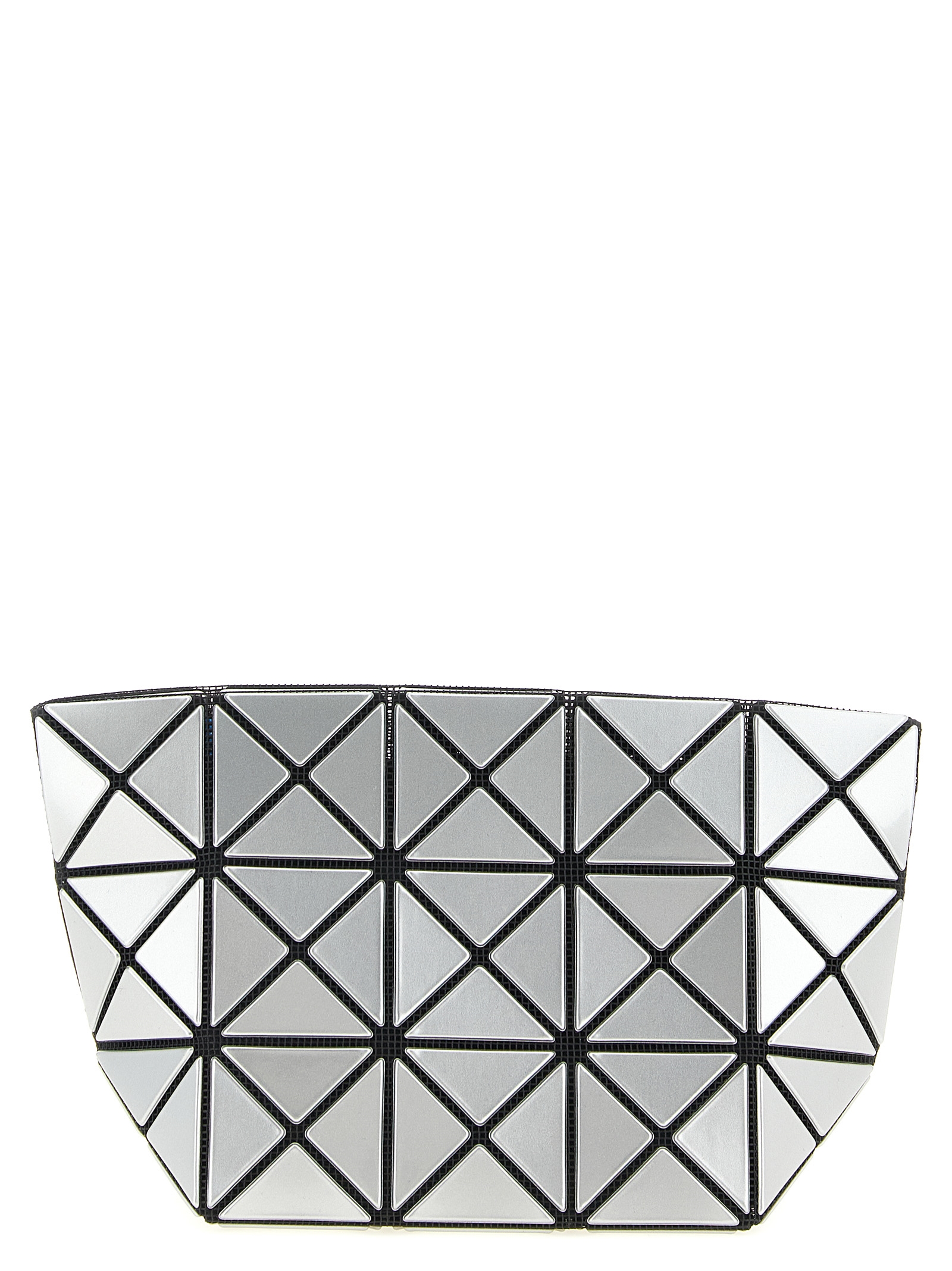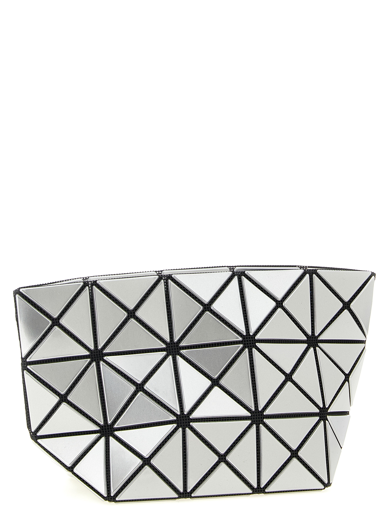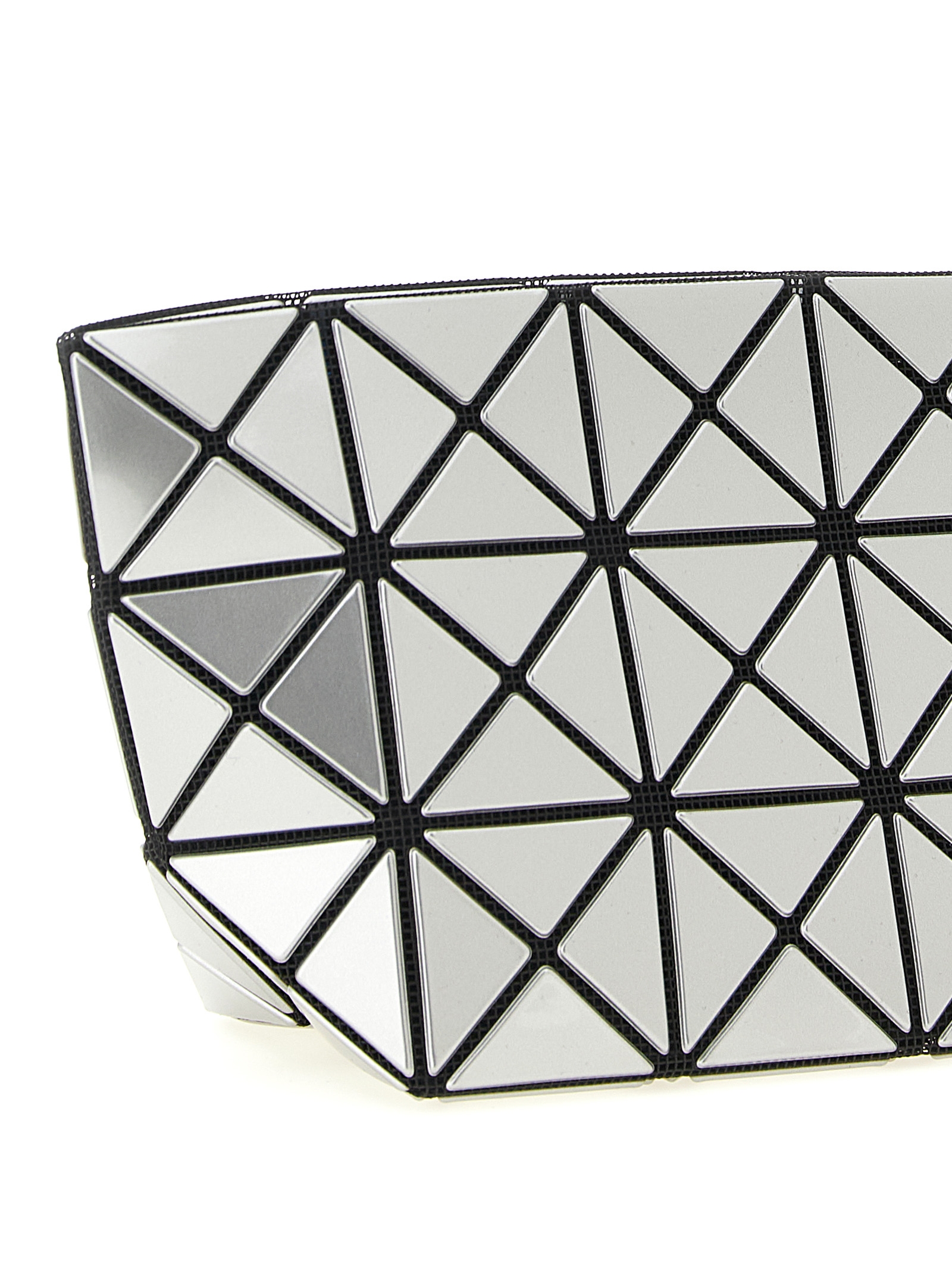 ‘Prism’ clutch bag in mesh texture and metallic-effect PVC with zip closure.