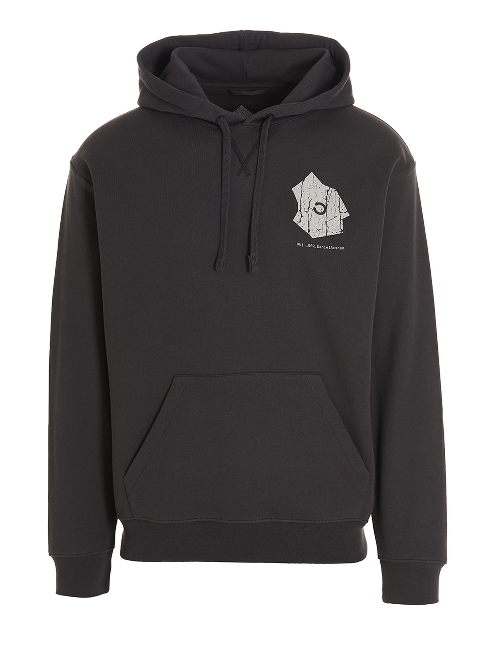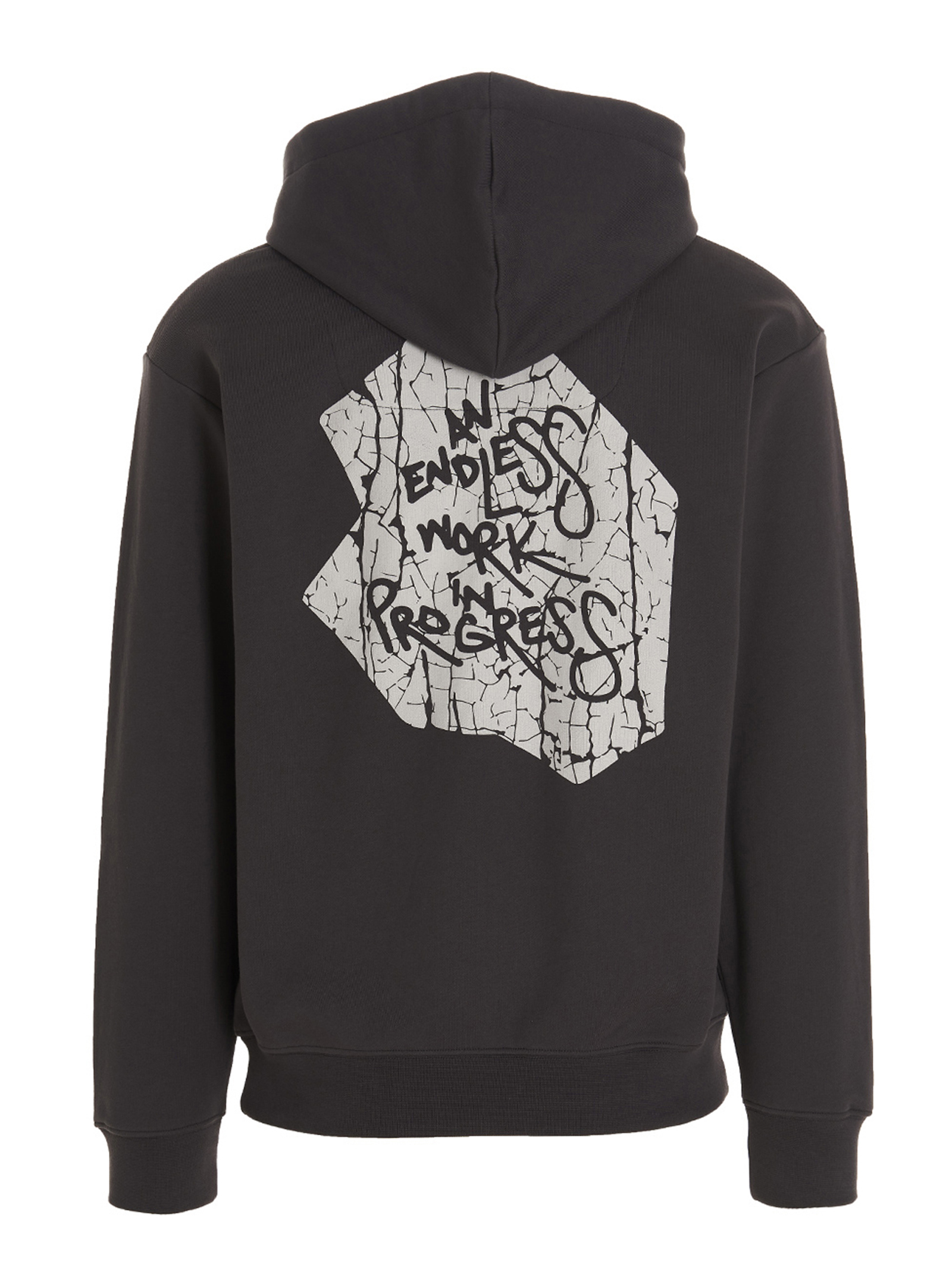 ‘Progress’ cotton hoodie with print at the front and back, kangaroo pocket, long cuffed sleeves.