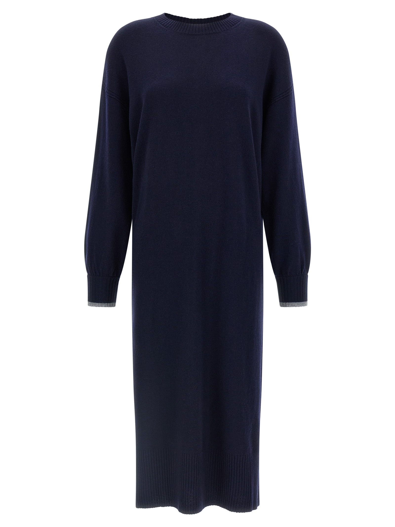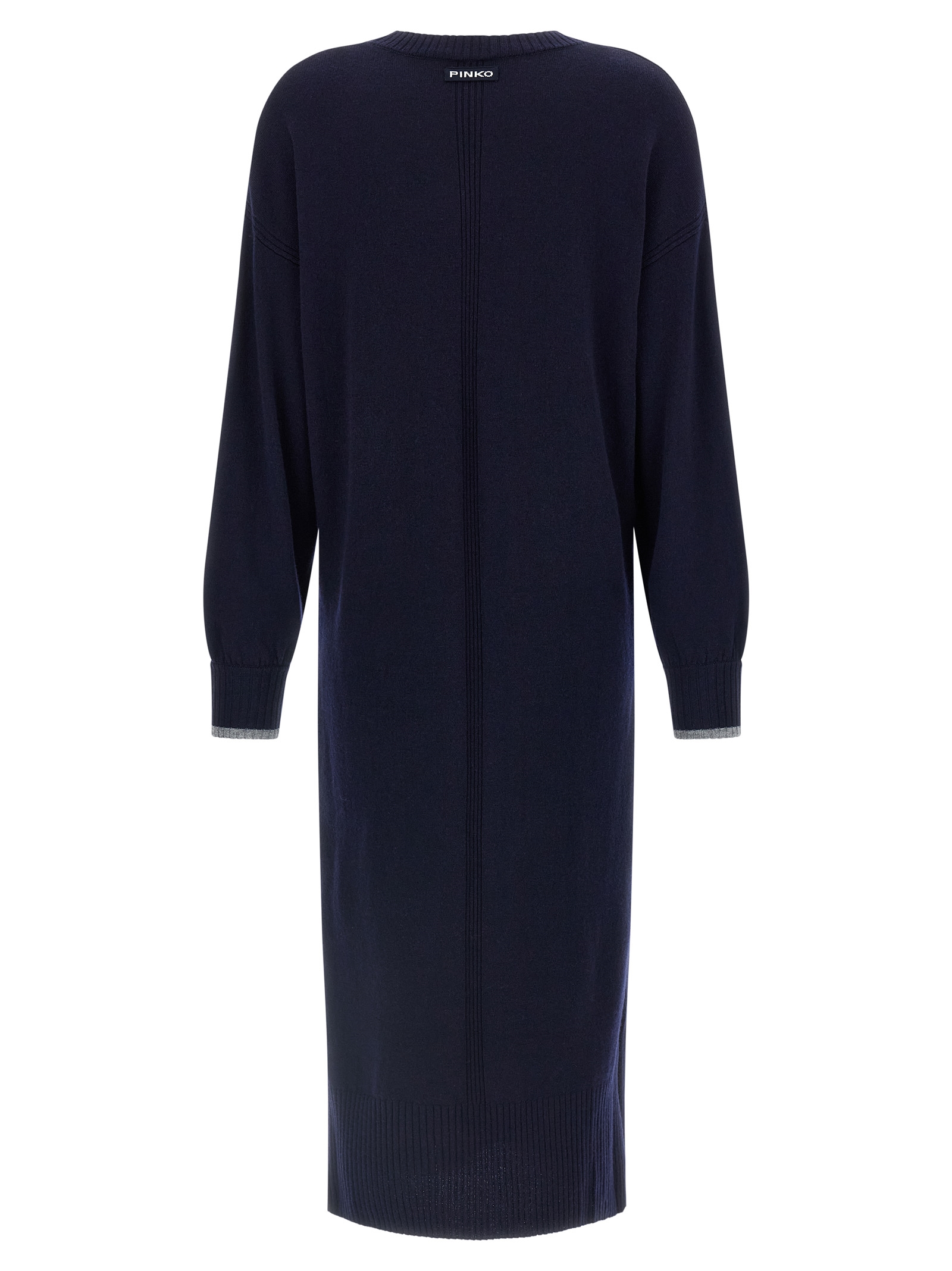 ‘Puerto Rico’ wool knit dress with crewneck with contrasting trim, back logo, side slits, long sleeves with cuffs and contrast trim.